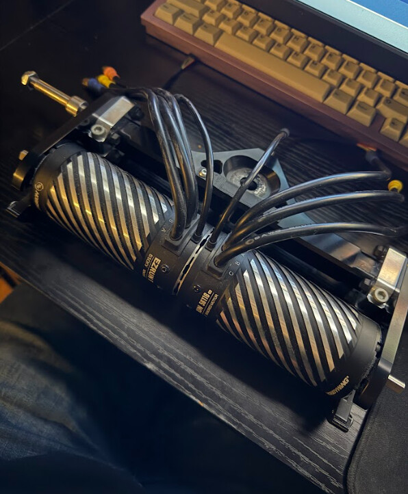 Now that I had gears I also needed mounts, for which @Titoxd1000 came in absolutely clutch as turns out he had been working on mounts specifically made for the mounting pattern of hobbywing inrunner motors, coupled with some 270mm wide dualities and the fitment is just immaculate, sorry stooge fellas I think the straight bar of motors just looks better