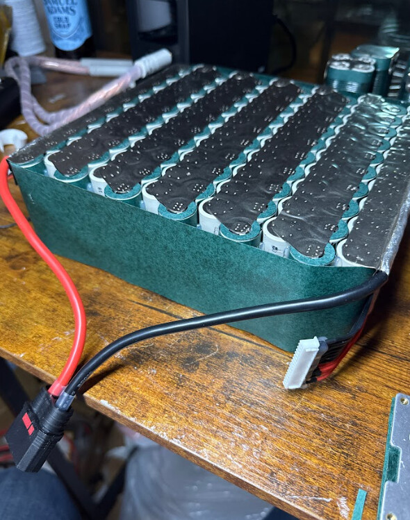 Build was straight forward, my new AwithZ P30c graciously provided by @stan_he made quick work of all the welding, and surprisingly enough my pinecil was good enough to solder a massive length of 8awg wire across the full length of both main positive and main negative, I figured I wanted to beef up the ampacity of those connections as much as I could since these motors are stupid amp hungry and my intention is to push these p42a’s to the absolute limit. Assuming all goes well this pack should be able to burst up to 22.68kw, though who knows how close I’ll actually get to that