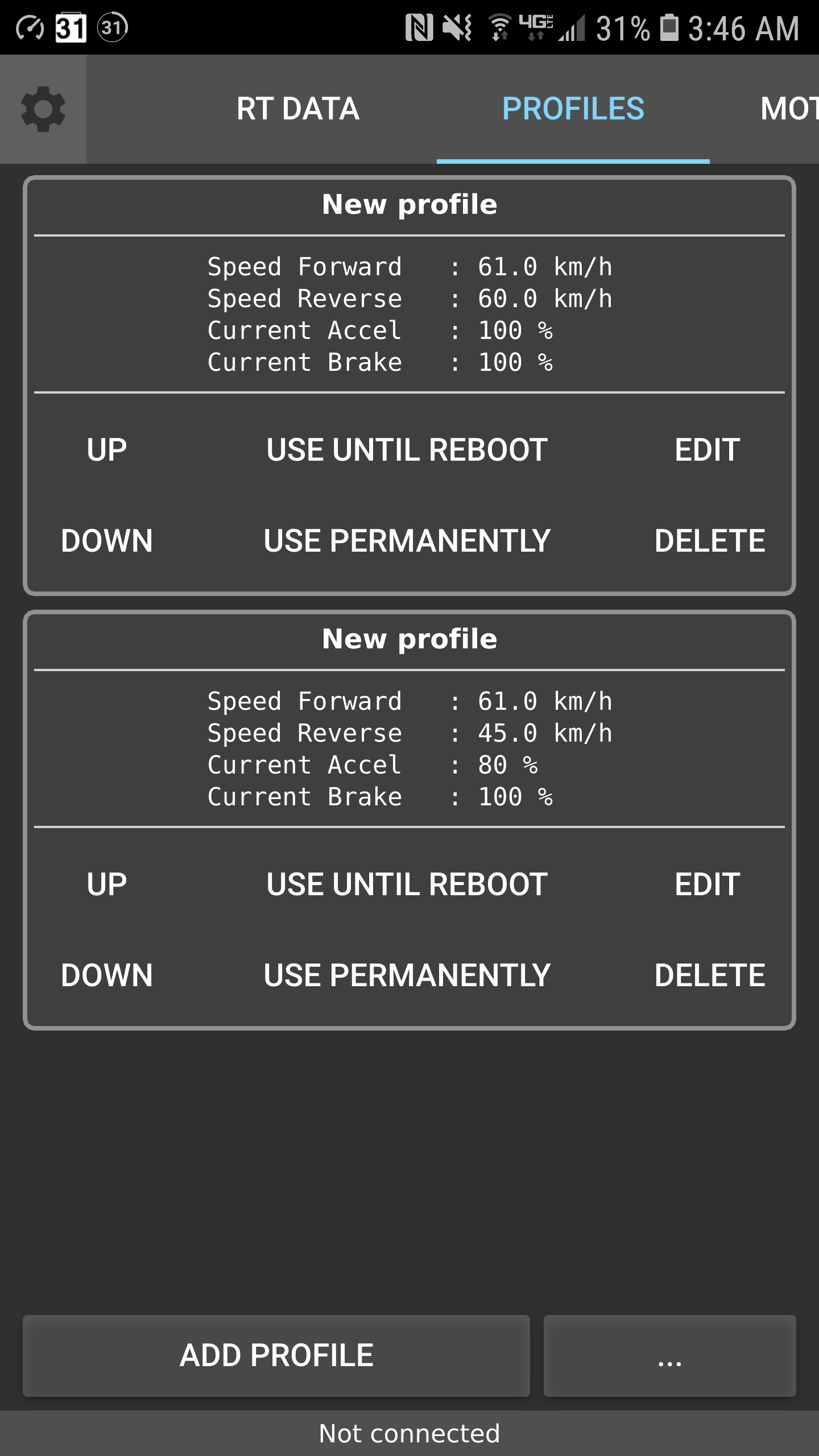 i never changed them after setting it up a few weeks ago when i got the vesc. it was workign perfectly fine then. i was monitoring temps and amp’s everythign is well below the average since im only using a 10s2p wowgo sanyo pack till i get the cells to build my 12s7p