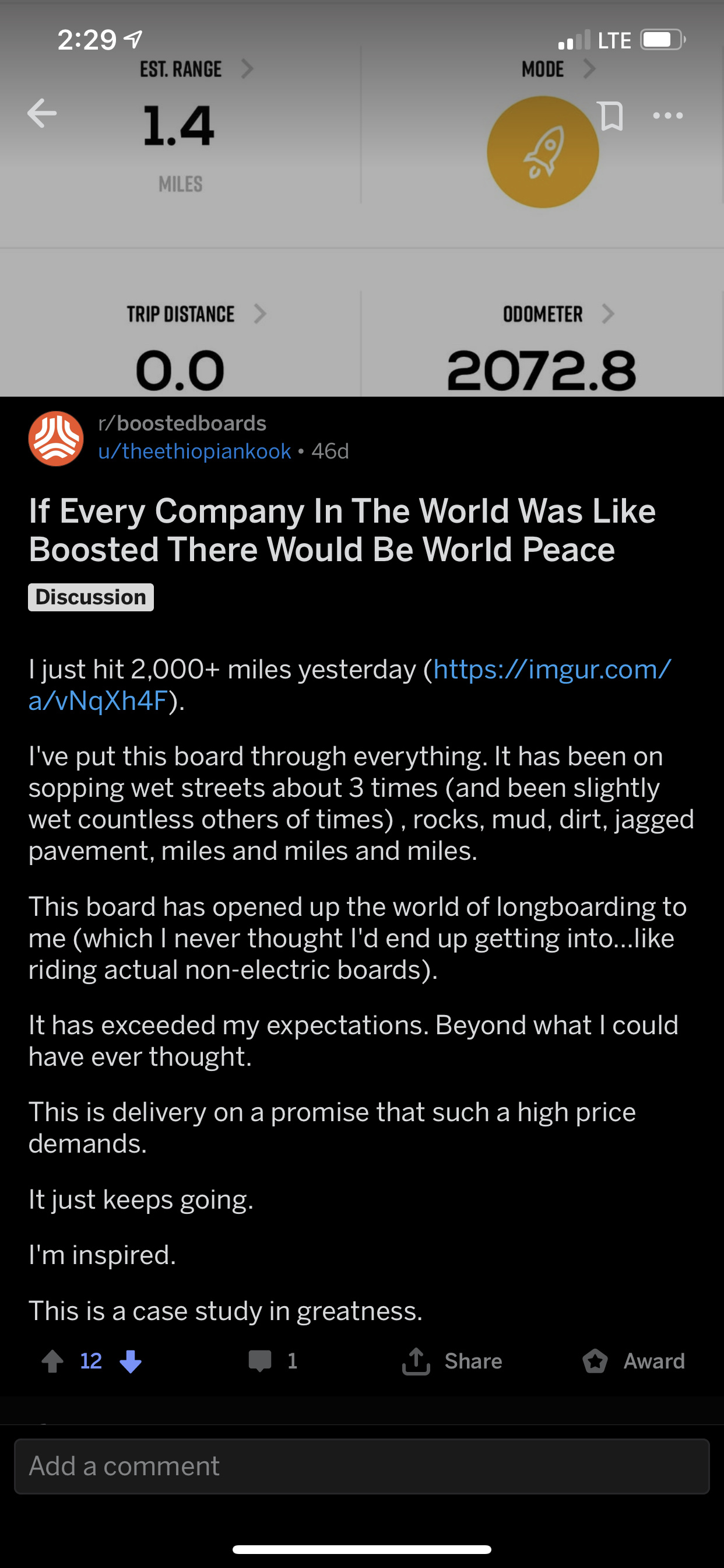 The Lacroix was my very first electric board. I knew nothing. Tire pressure? Voltage? Amps? Shit was all completely foreign to me and that group helped a lot with figuring things out so I always find it odd that it pops up in conversation. It’s like any other owners group I’ve seen from PC parts to BBQ grills.