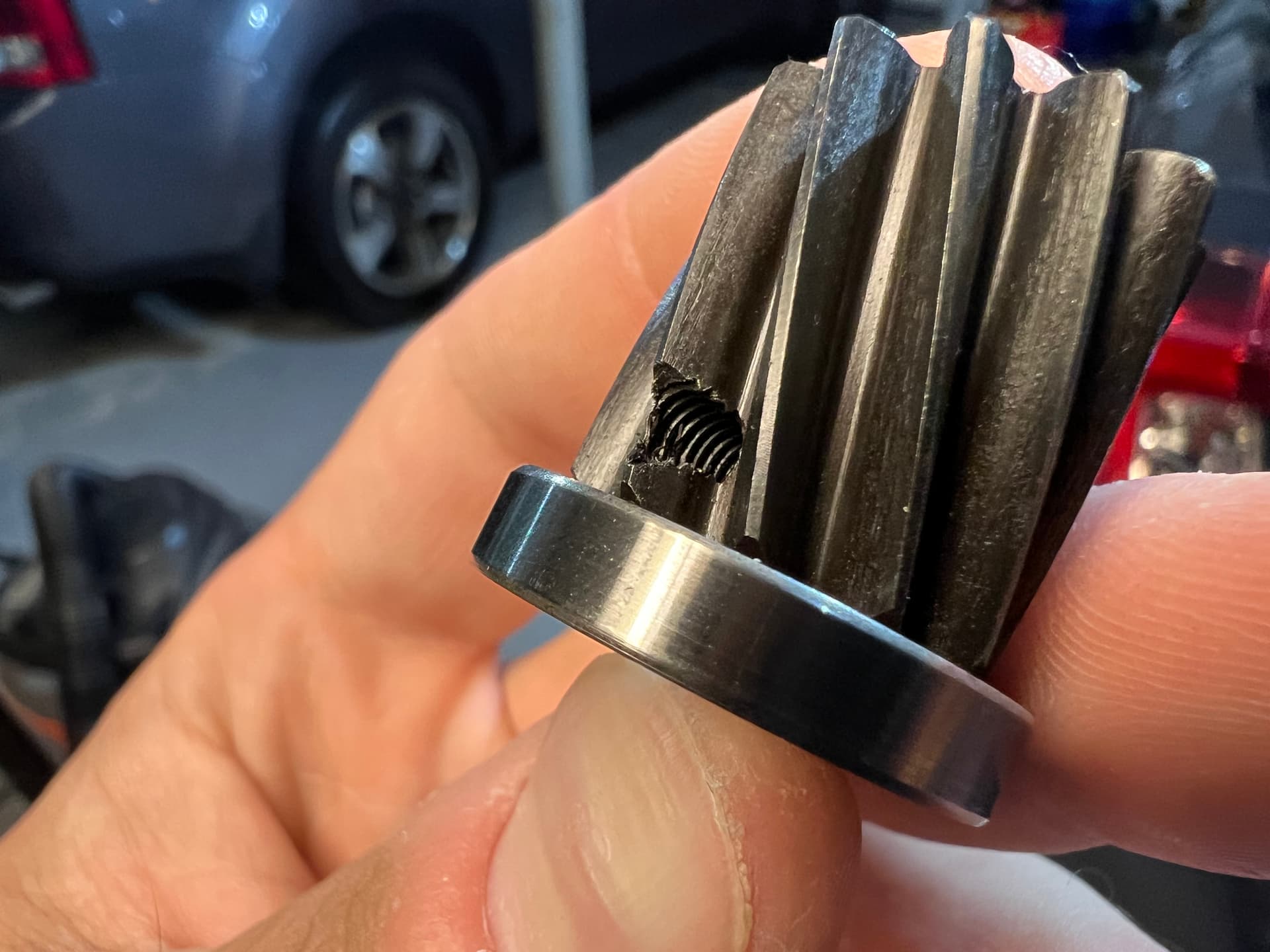 These fkn motor gear grub screws are going to be the death of me. I managed to get one set in one gear ok, but this second gear is very challenging. The threaded hole goes through half of a gear tooth so one side of it is wide open. Horrendous to try and thread one of the grub screws into without mashing it up. I managed to drop one on my garage floor (RIP) so I have 3 left. One of these is already looking not so great. Not optimistic about my chances ![]()