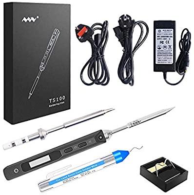 ts100, 3 tips, power supply, stand and i got a barrel jack to xt60 connector for lipos instead of the probably useless solder.
