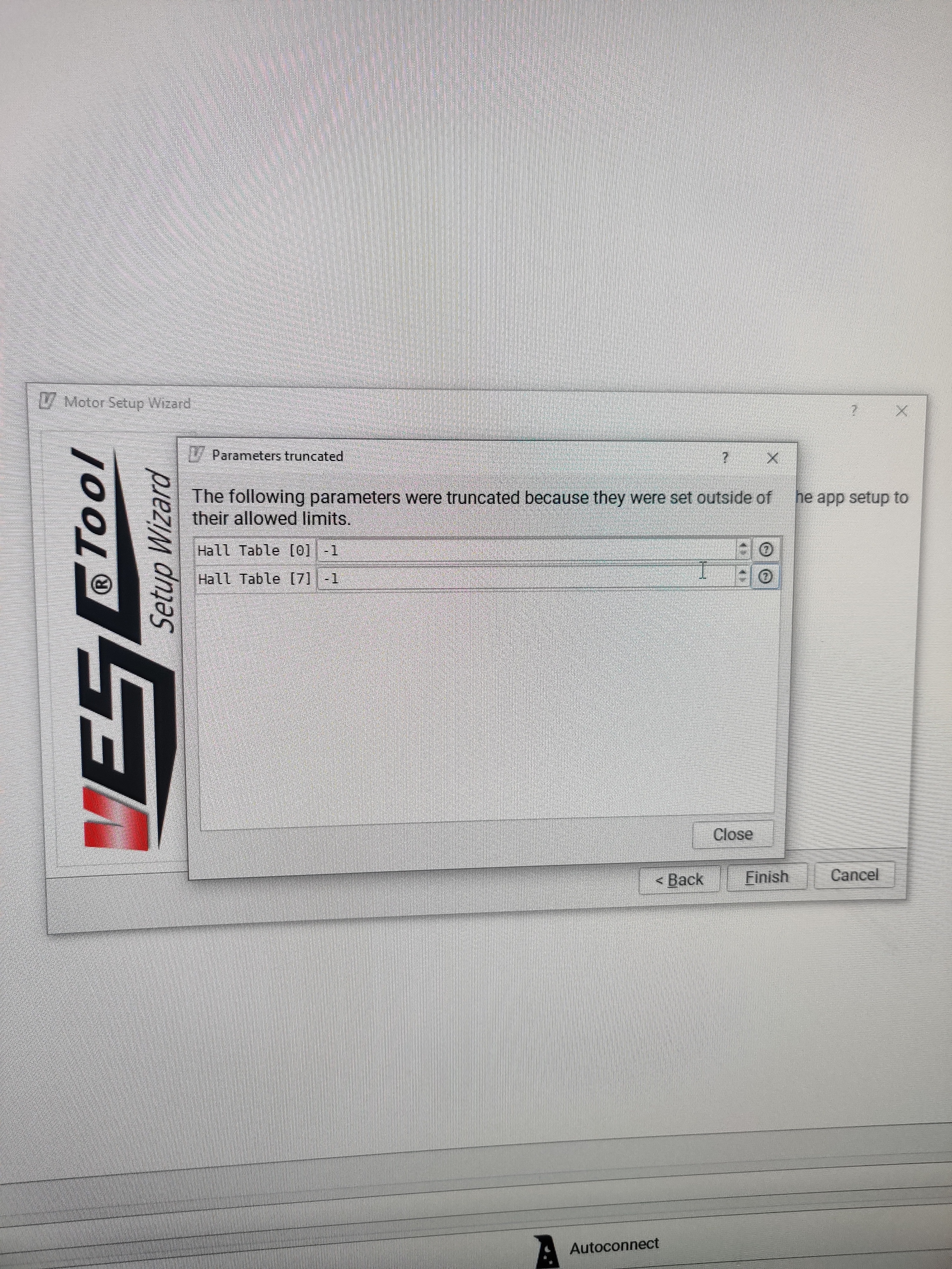 Could this be something related to the sensor wires. I have a HK SK8 149kv 6374 motor that is sensors, being powered by a flipsky vesc. Maybe they are pulling when turning and becoming loose need the motor? I have plugged it in to vesc tool to see if I could set them up again. And got this message after detecting and applying parameters: