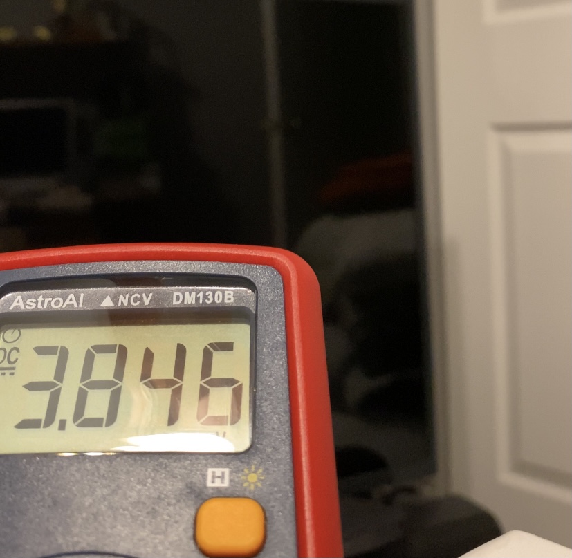 So just got my multimeter and decided to check the lipo that I mistakenly kept the balance extenders in and cut all the wires at once, this was a while ago. But I tested out the cells and they end up in 3.846 or 38.45 range, the last cell (5th cell) ends at 3.842. Is that normal? The cells seem to increase as I just check in general
