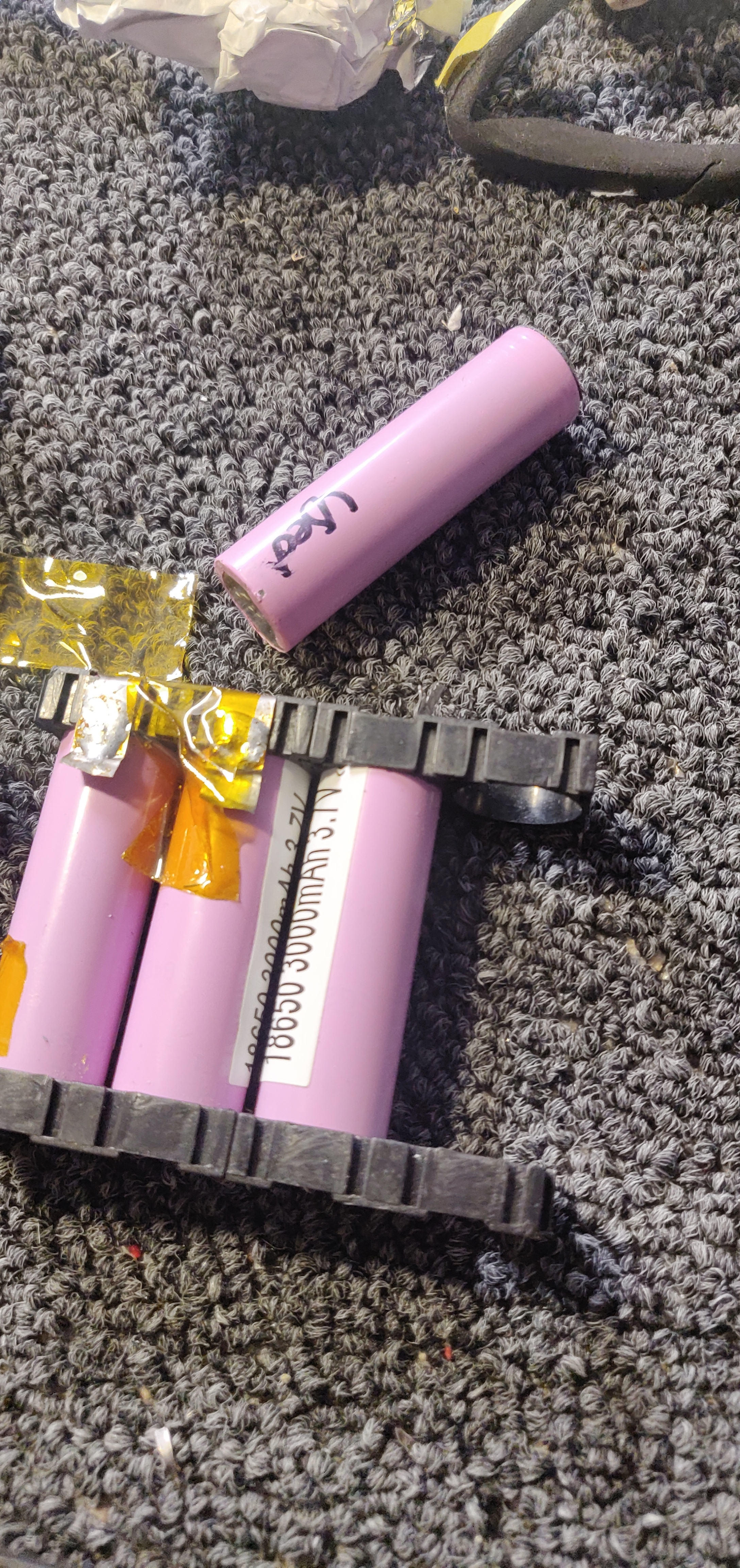 Soooo turns out using a cell that came out of a vape was a bad idea. 39 good cells one used from a vape, guess what failed. Did some surgery. Gonna make sure it was that one cell and I may reuse the other 3. Or just rebuild the whole group. Unsure so far.