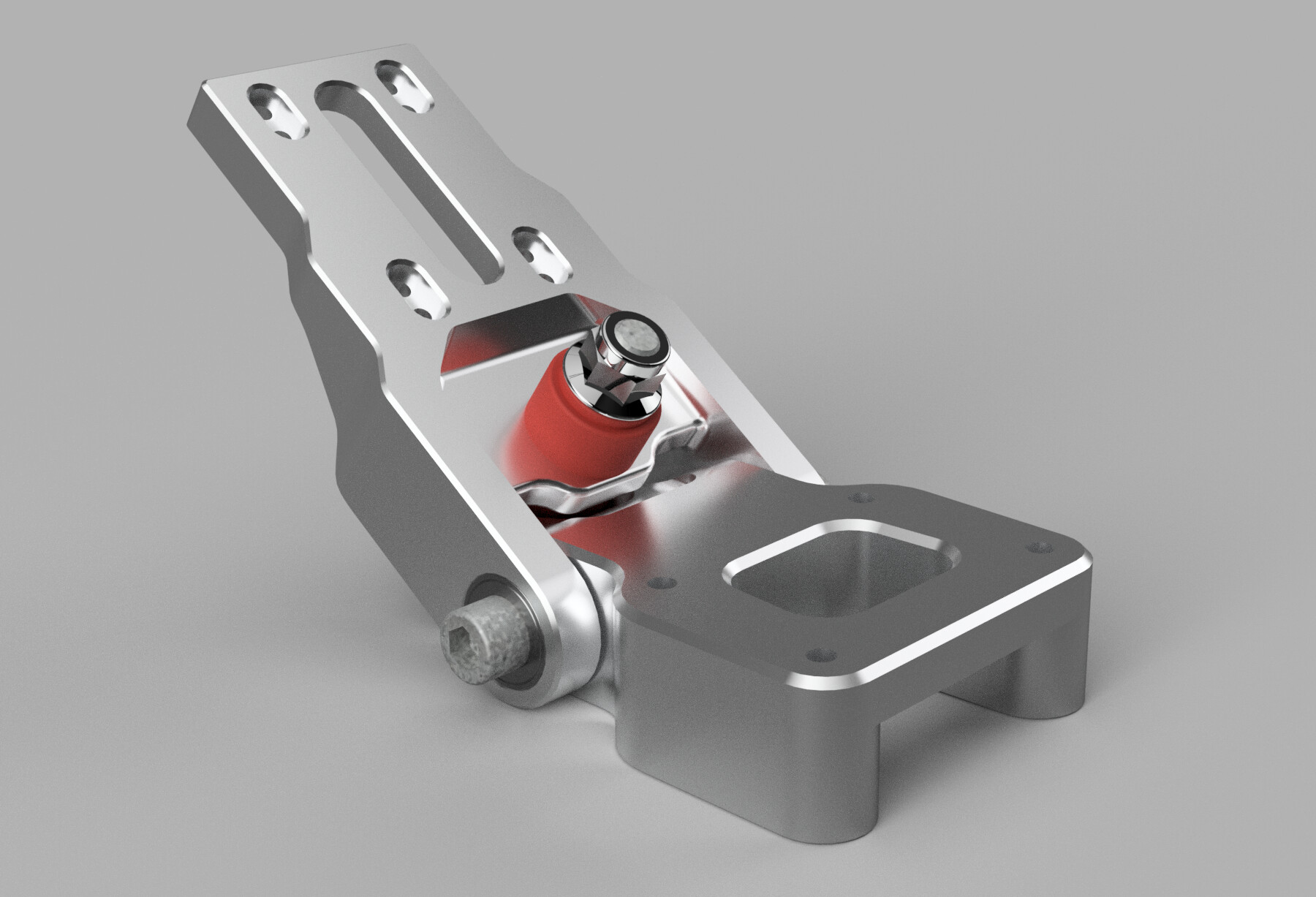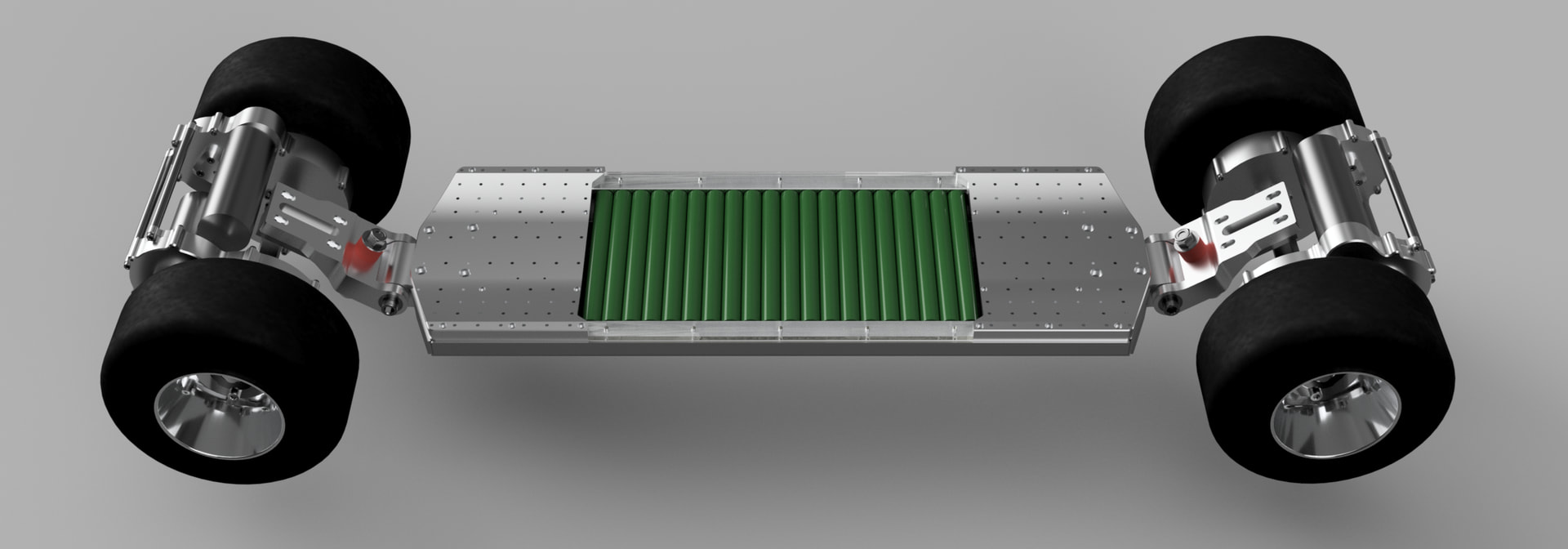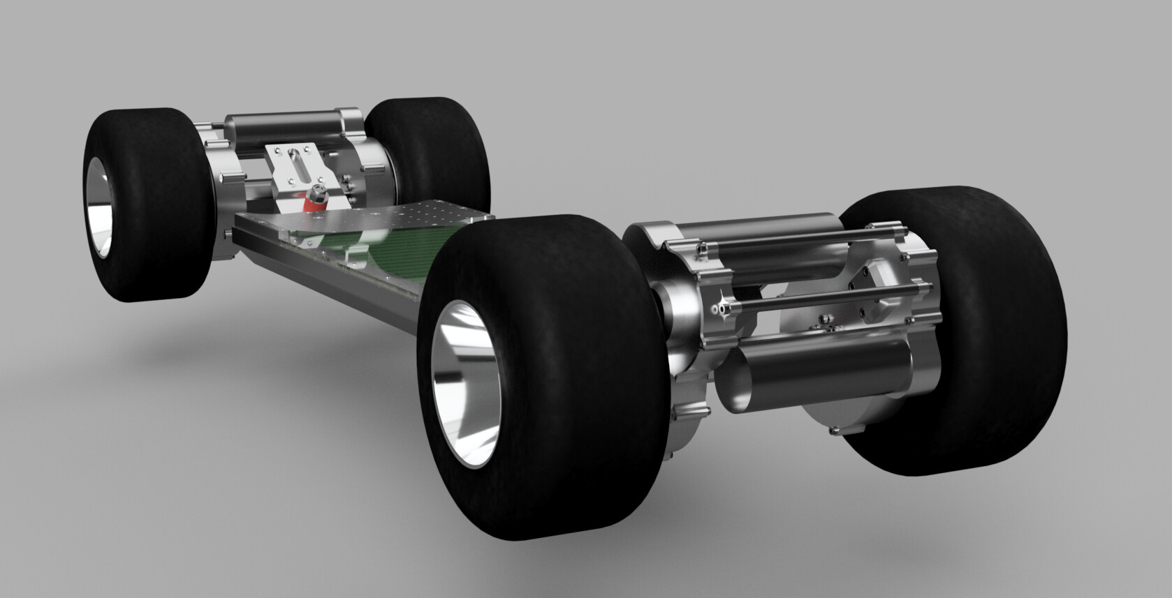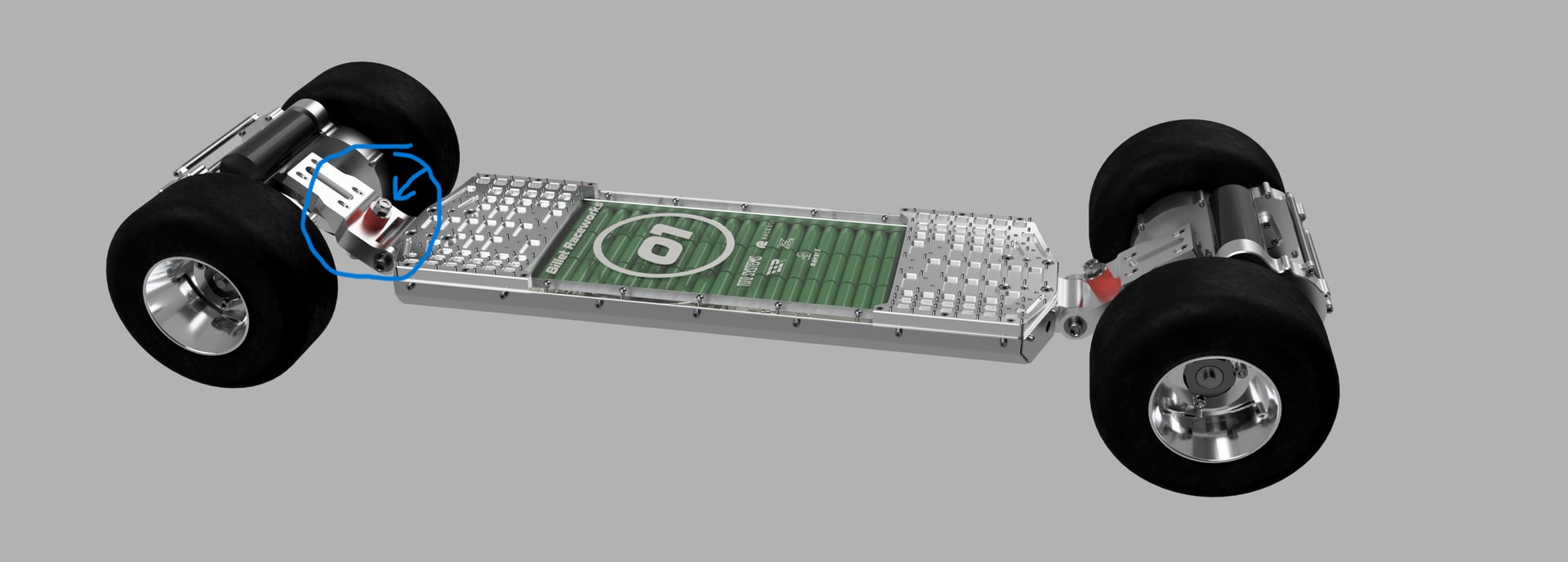 That’s a swingarm style suspension inspired by Radium’s solution, though I have different geometry and goals. I’m not using it for suspension purposes, the kart wheels are already great at eating up bumps. I have it to emulate a mountainboard style deck’s tip angle flex, while being able to use a very rigid chassis to eliminate all torsional flex that flexy decks tend to have. The main effect I’m looking for is increased truck angle in high G turns, as this allows running a very stable setup with low angles without sacrificing any turning.