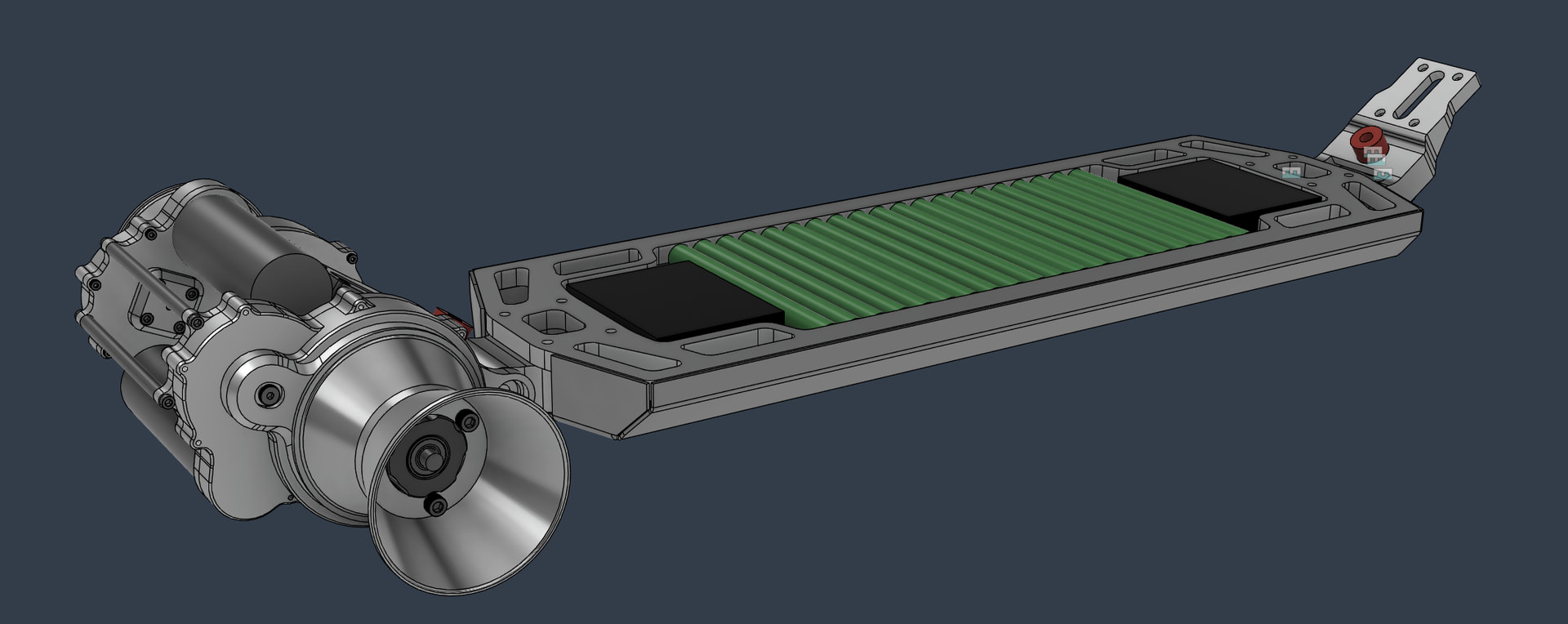 Regarding the footpads, the plan is running studs instead of griptape like on an EUC pedal. It grips better and the adhesive of griptape won’t be causing problems either. It also allows to cut down the weight of the footpads.