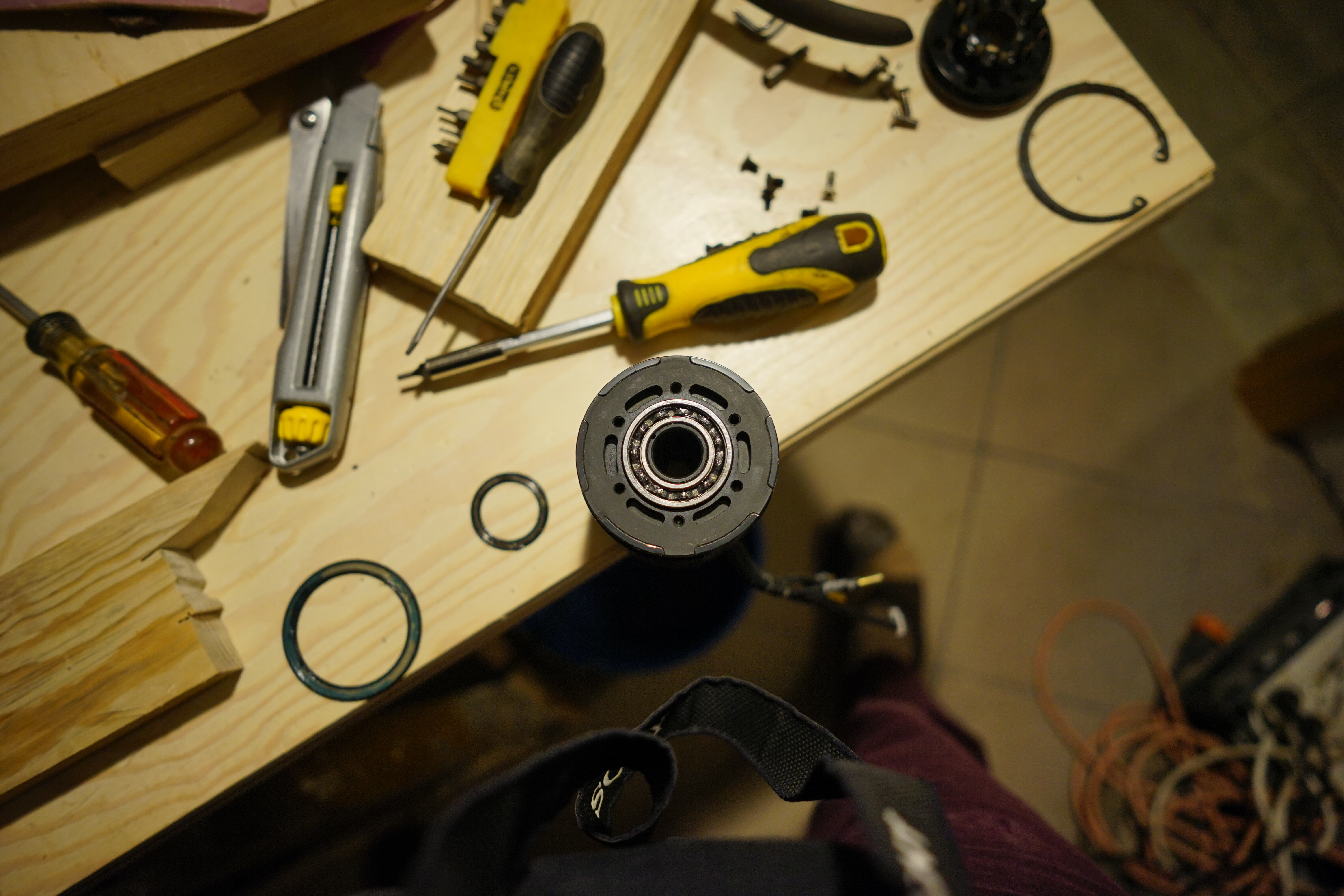 Simplest and way i can think of is buying a fitting nut for a tightening wrench-tool-thing (sorry, english not first language) that exactly fits the rim inside the smaller bearing on your second photo, place the outer rim surrounding the big bearing in your first photo on a vice or similar supporting structure and gently tap out the whole portion of the motor with a rubber mallet. I’d clean out the bearings with wd40 or similar, see if they run VERY smooth (in my case a clicking noise disappeared after exchanging a RATHER SMOOTH running bearing against a new one) and regrease with bearing grease. Be sure you didn’t damage the rubber seal when removing. Last thing you want to do is wonder why you won’t get more detailed and precise help from the manufacturer. We’ve got other threads containing more detailed instructions though.
