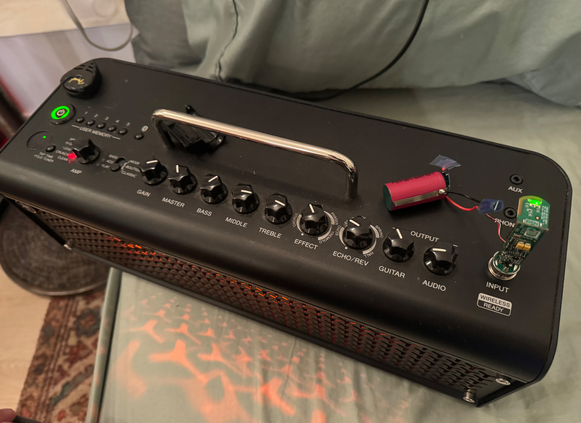 Plugged into amp - Light is green