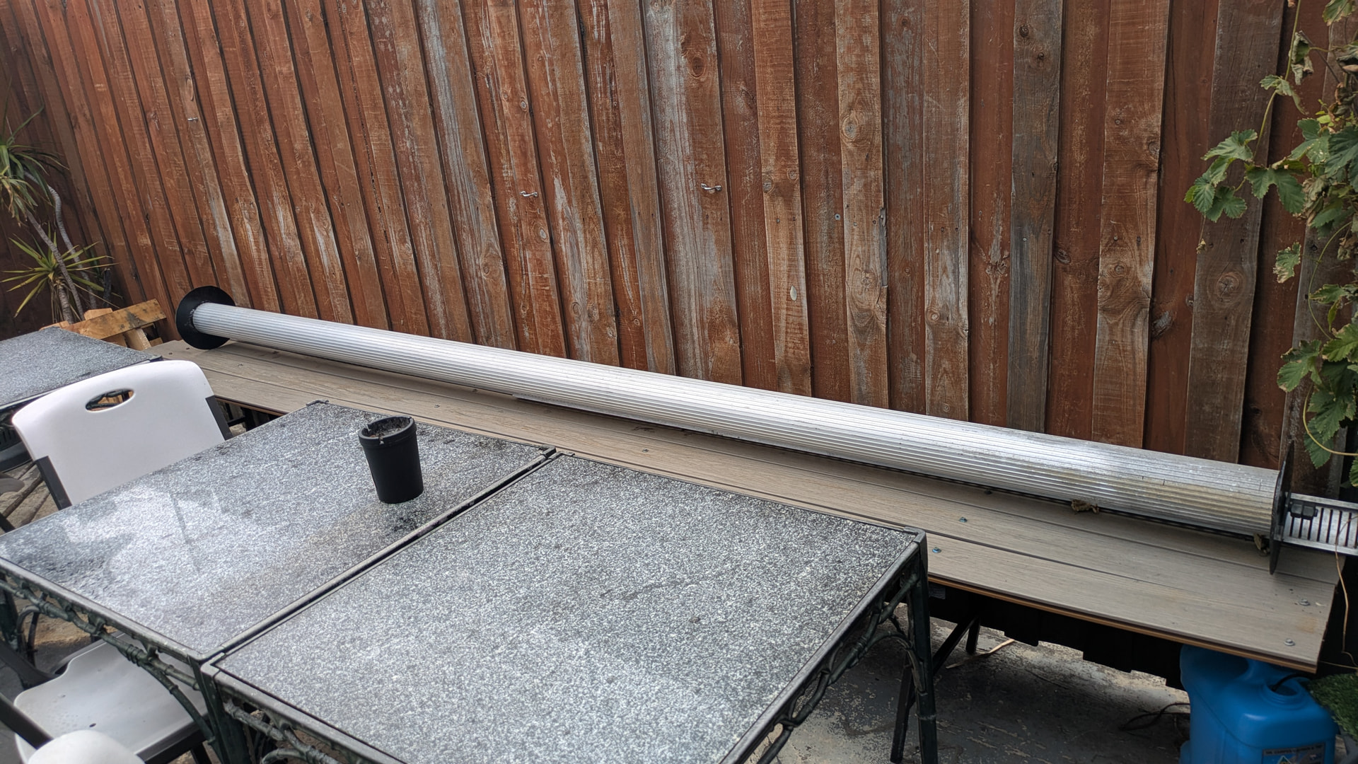 This will make a massive difference for our space. Still a little concerned about wind uplift but we’ll sort that out when it up. I completed the roller element yesterday. I still need to fix the tarp to it and then make the winding mechanism.