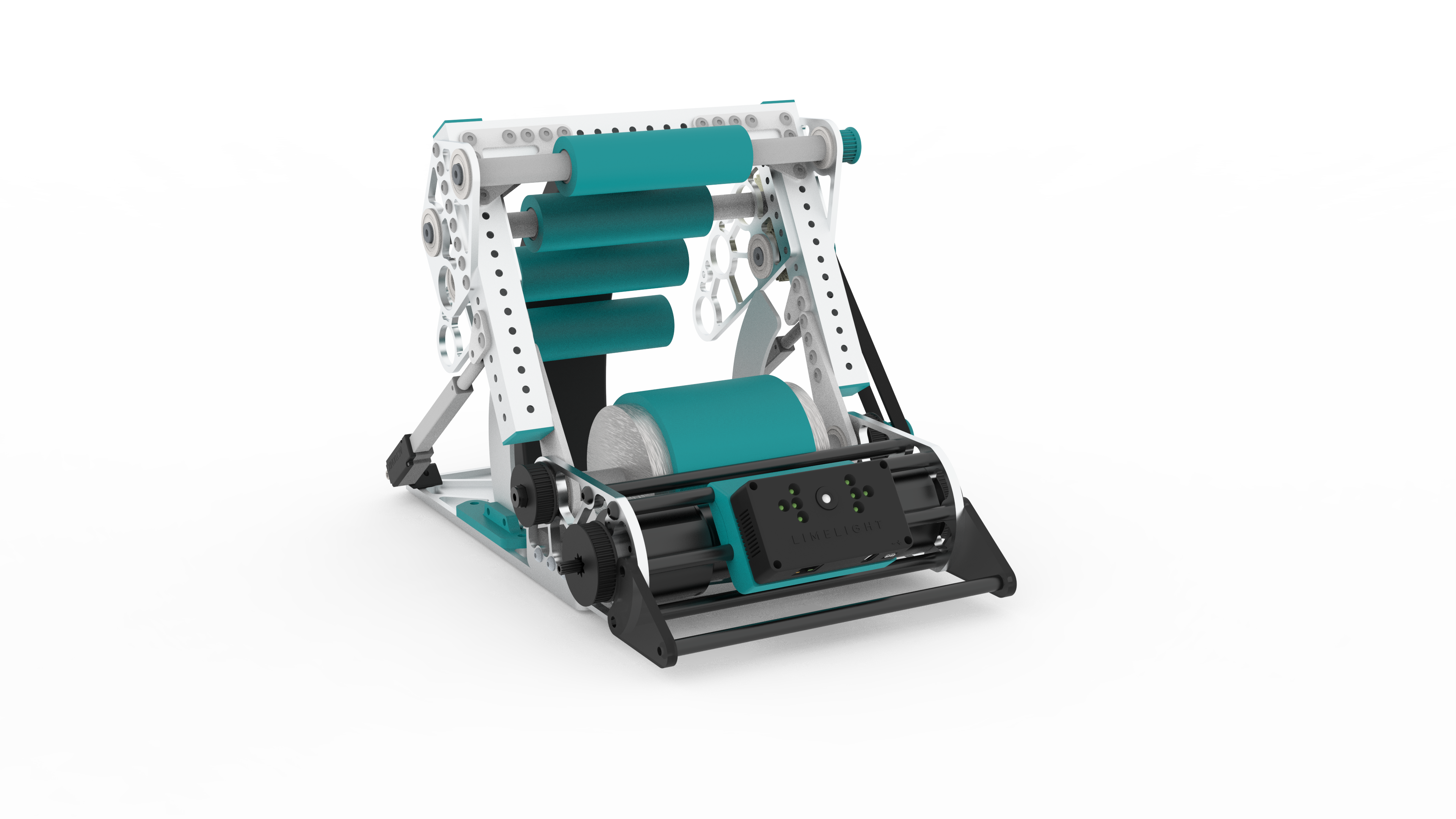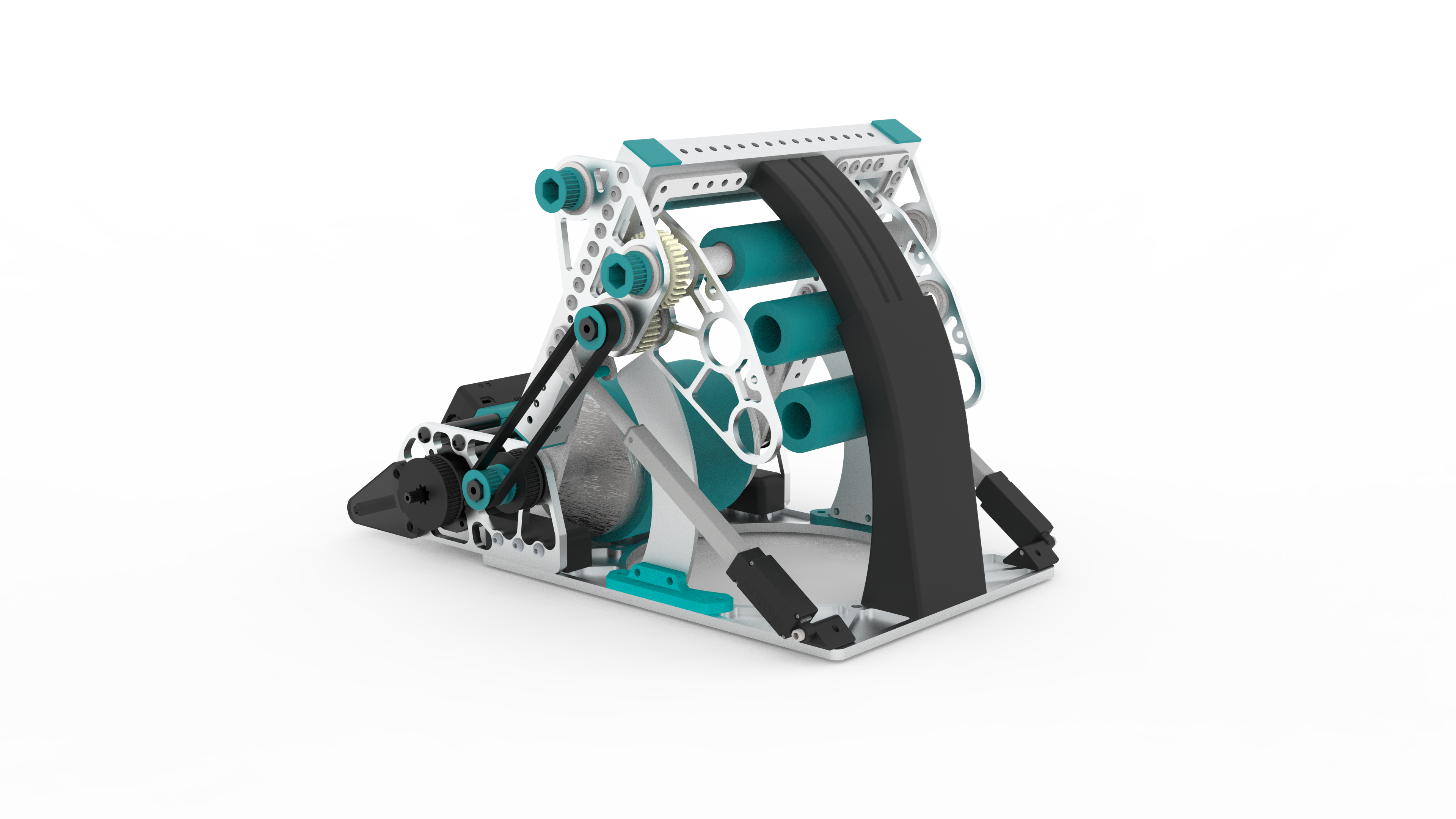 Second, and probably the most defining, is the roller array. The main flywheel is a 4" urethane wheel with stainless plates on each side for MOI. What makes the array special, are the hood accelerator wheels. We originally only had one, then moved to two for our 2020 competition. We realized that the accelerators had a huge hand in the accuracy as well as consistency of each shot (not slowing down after the first shot, causing the second to miss, etc.)