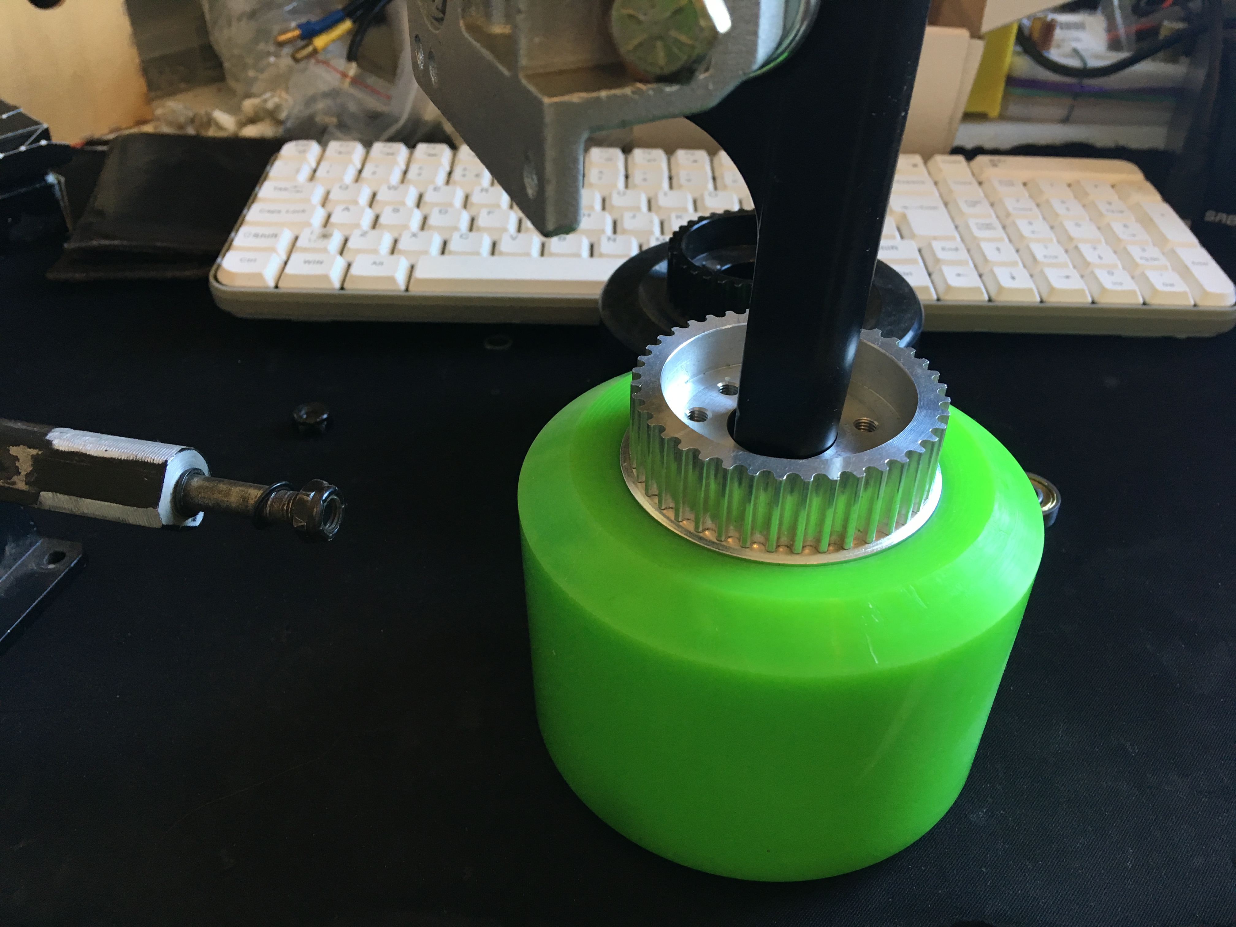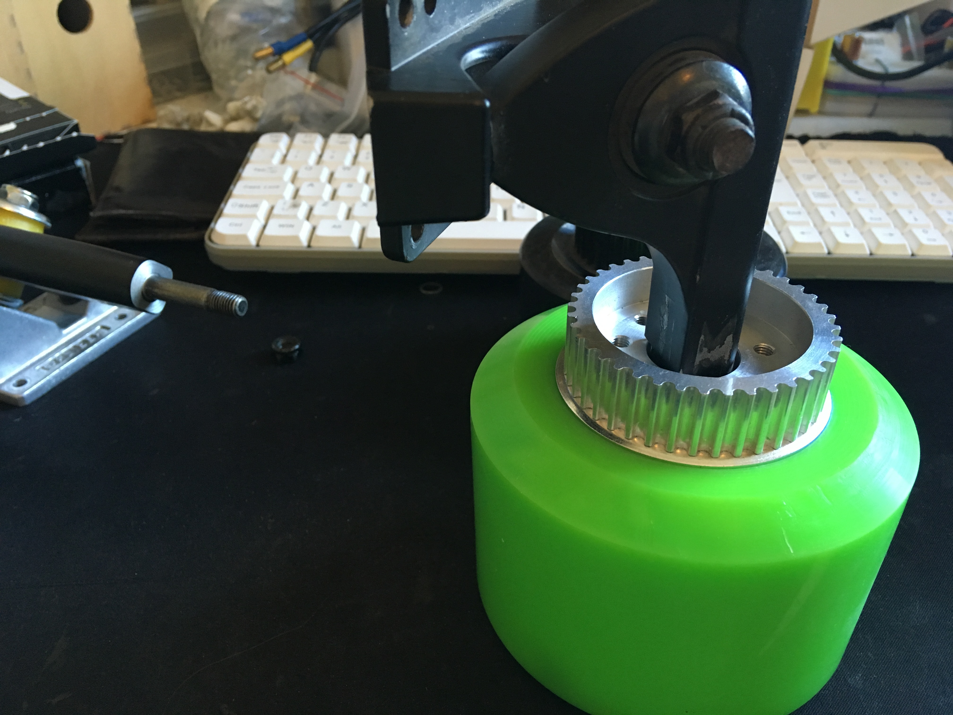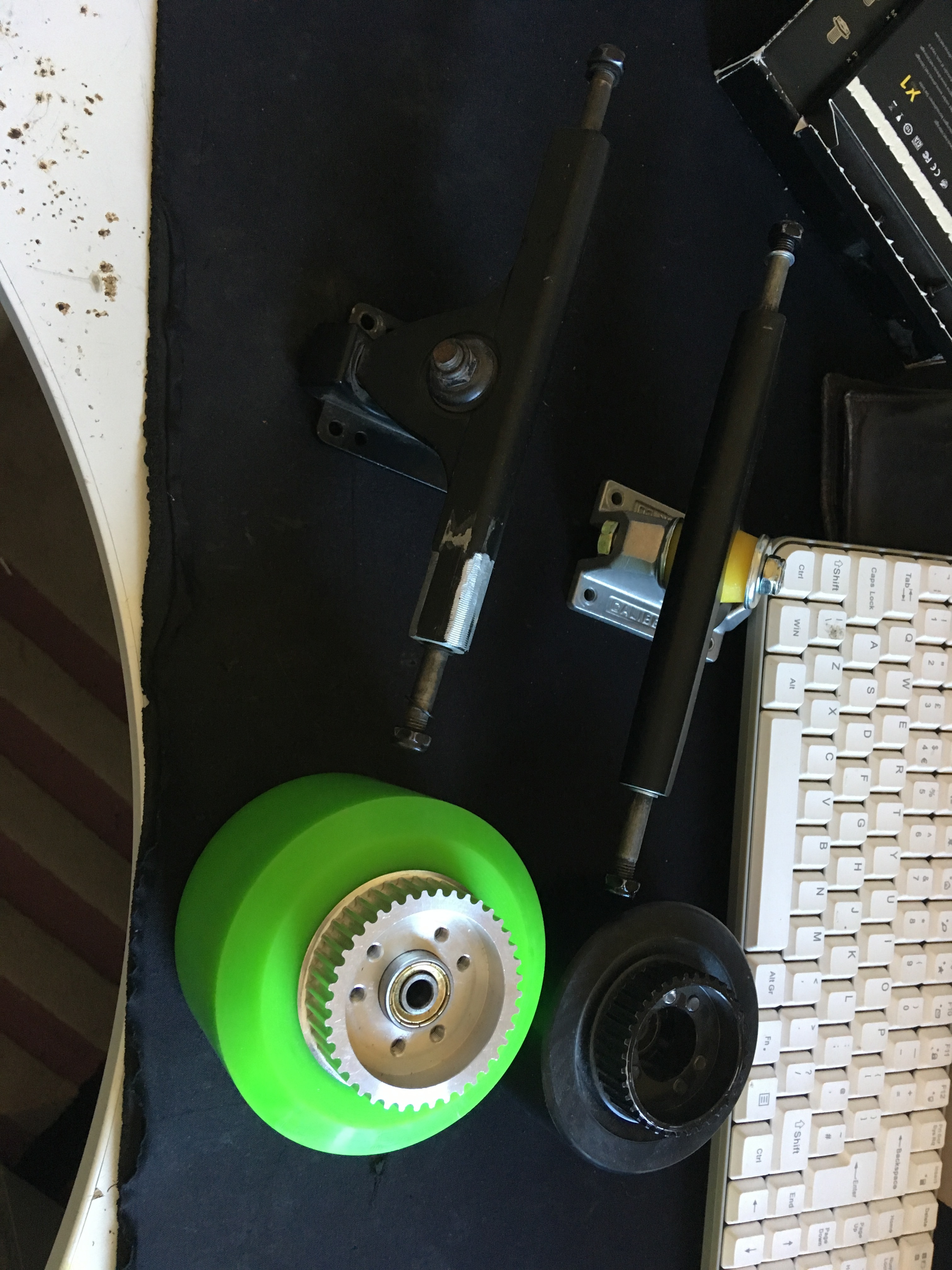Btw, I am trying to install it without the bigger bearings inside the pulley because it’s impossible to install on the caliber 2 trucks if I used that pulley