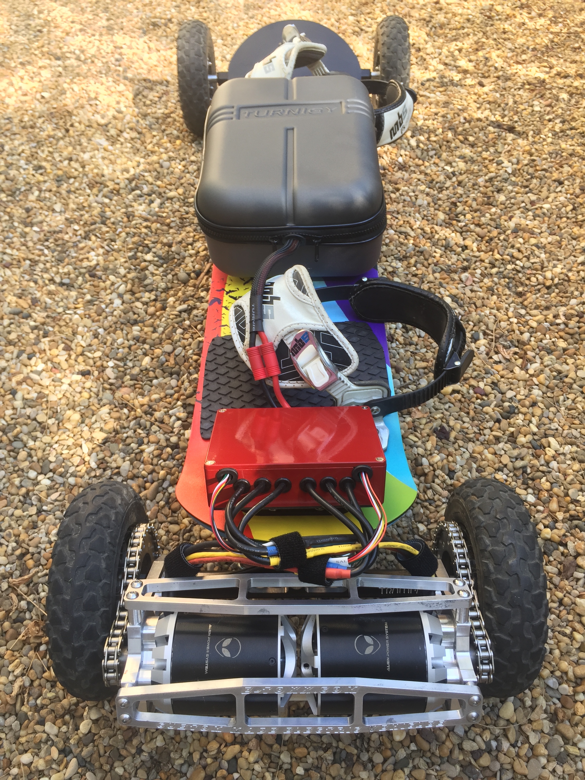 I swear I’m just paranoid. I carry Extra bearings, belts, bolts, nuts, bushings, fuses, spacers. Basically a few spares of everything. The spare bearing came in handy when I forgot to put my axle nut on and I wondered why I was getting this strange fish tailing from my back wheels. The only thing holding my wheel on was the belt. Bless Jared and his oversized wheel pulley bearing.