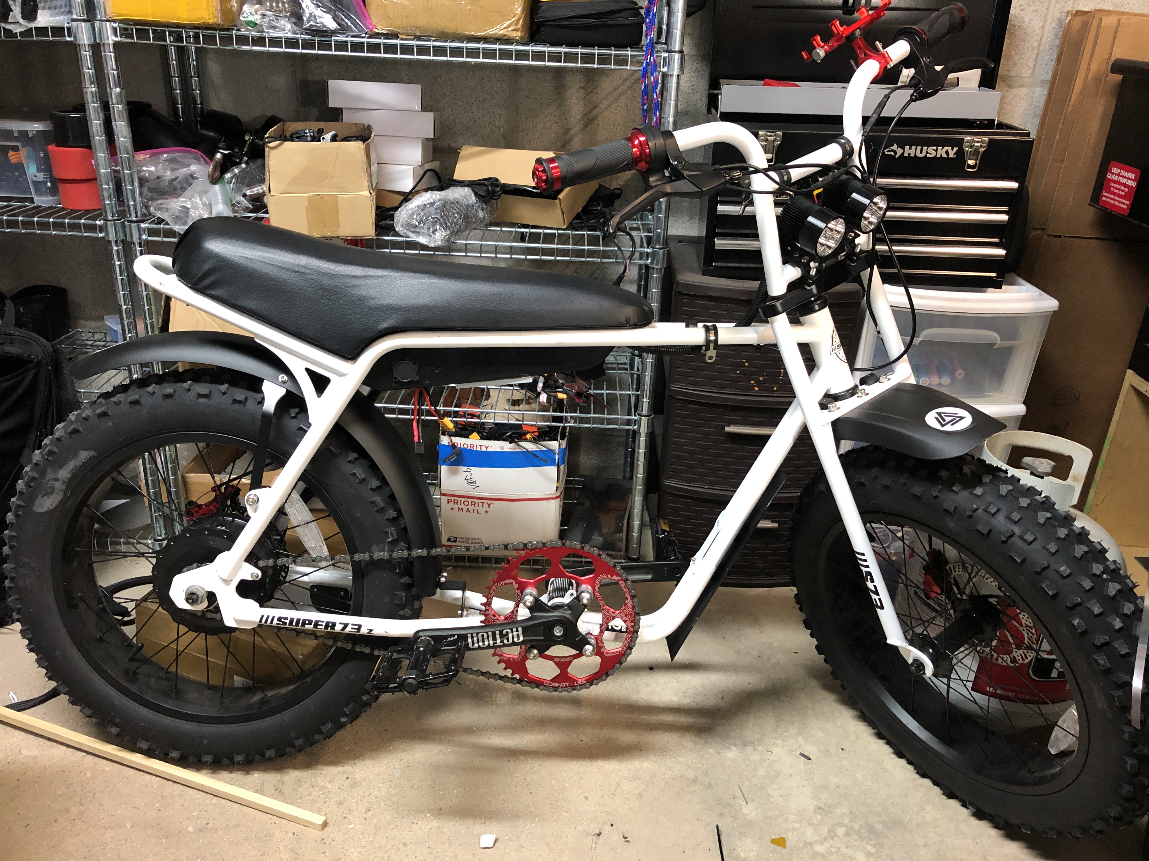 A ton of custom upgrades like a thicker seat, working brake lights, head lights, 54t chain ring , new cranks that sort of thing