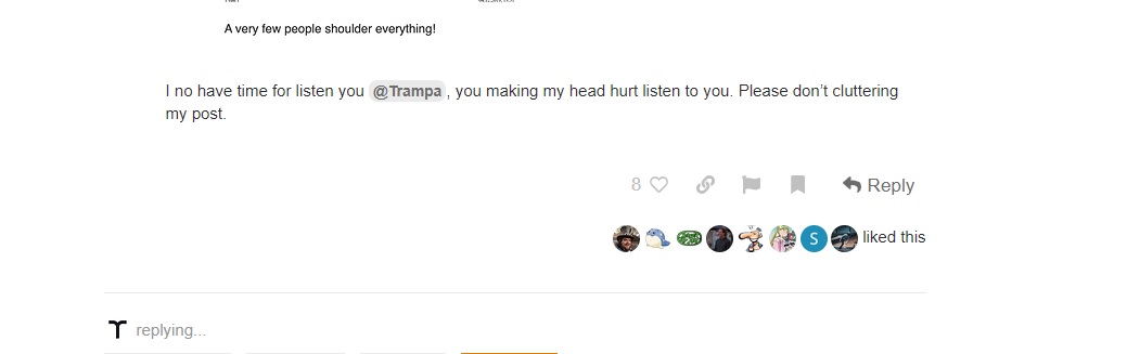 I no have time for listen you @Trampa, you making my head hurt listen to you. Please don’t cluttering my post.