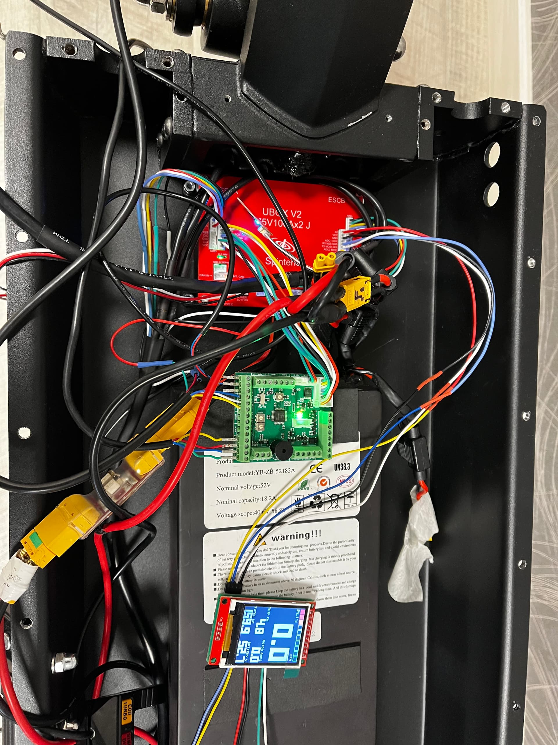 uart is used to speak to display (display button used to turn on headlight over uart light) (can to vesc)