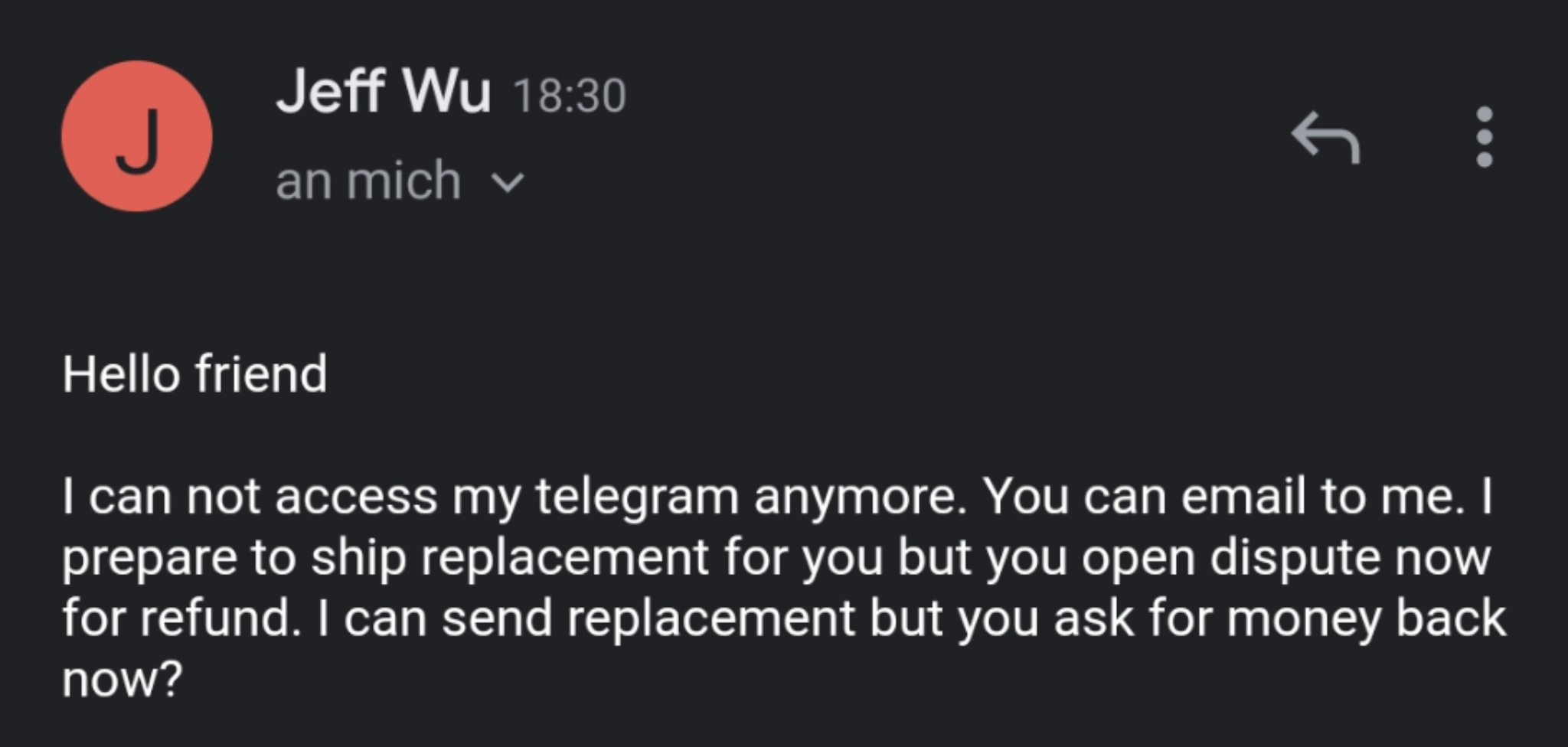 But I sent them a bunch of information about the emails between me and Jeff and is lack of response so I hope they will resolve it quickly