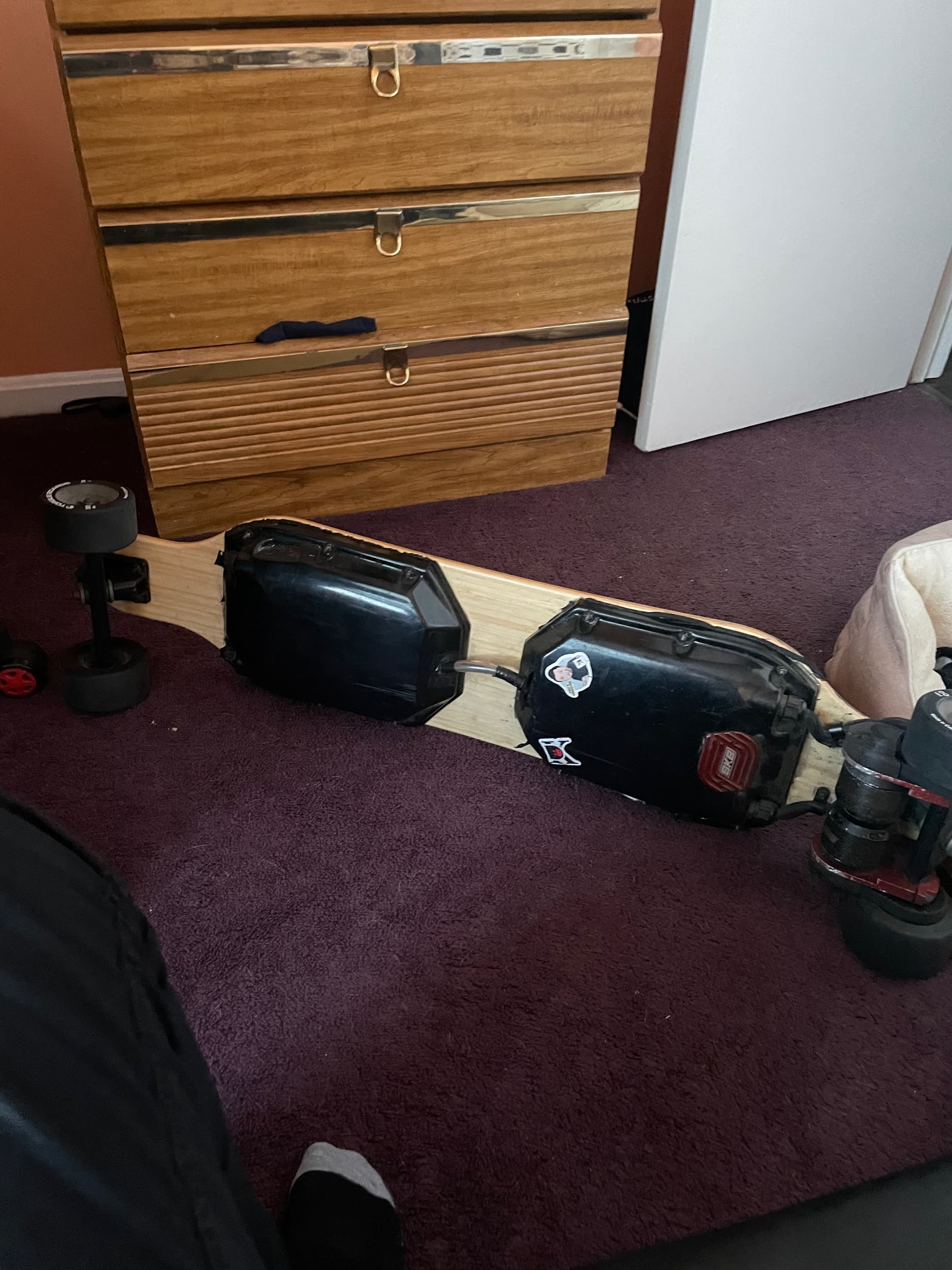 Selling my “modded” BKB duo, has a extra 10s3p battery connected in parallel, 20T speed upgrade kit, 100MM torque board wheels, VX1 remote, Fast 5 amp charger. Range I get in it is a good 25-28 if I’m gunning it. Top speed of 35 mph. $700 and I’ll also throw in the triple 8 helmet and some gear for an extra $50. The board is definitely a little dirty but I’ll clean it up once someone decides to buy it