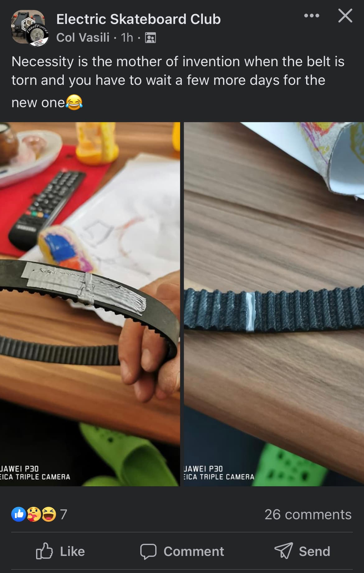 Would have been better off splitting the whole belt lengthwise, so the two breaks could be at opposite points on the belt, and then taping that whole thing together
