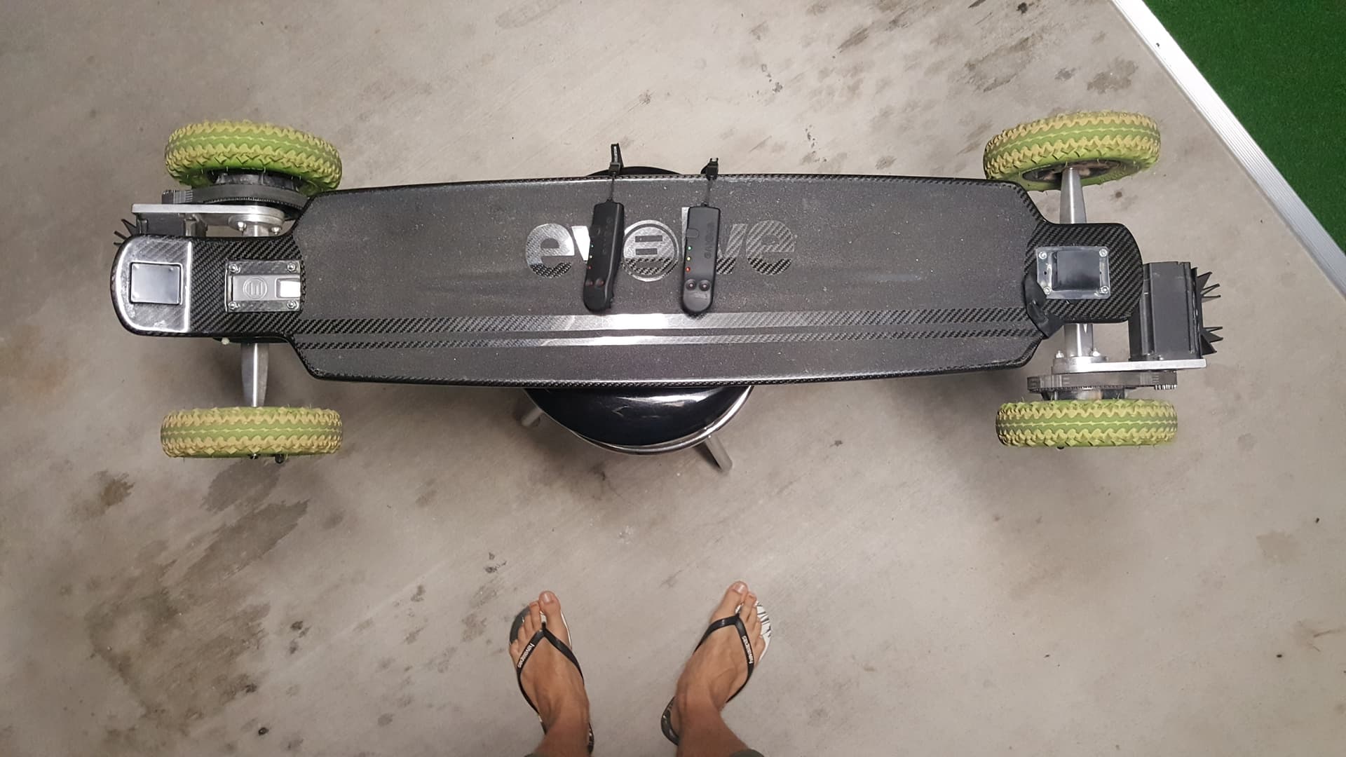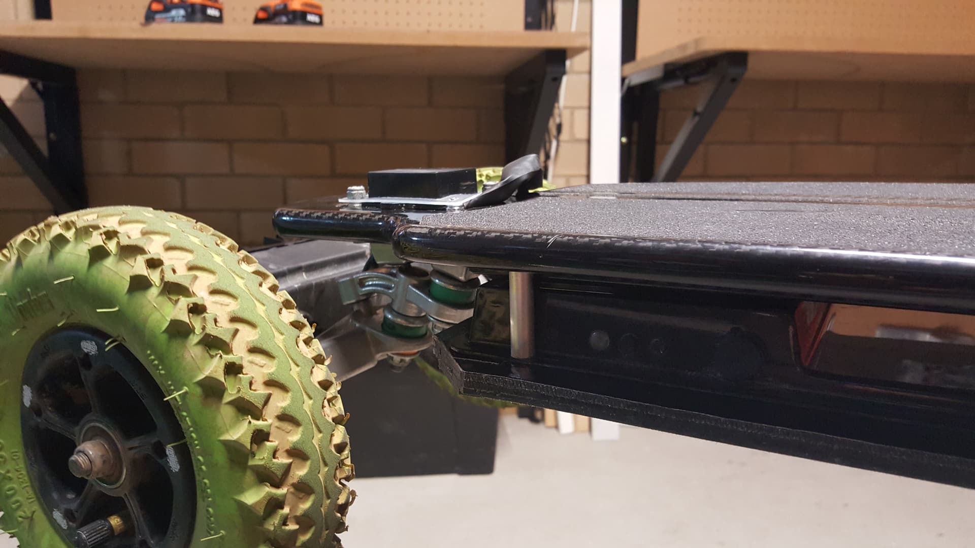 This is the shitty section and it found its home. This thing was a one night build experiment that essentially combined 2 stock boards onto one and needed two controllers to operate. One went in forward the other in reverse. I rode it around the block laughing like a lunatic. The one on the bottom needed the clearance to house the battery tray bump for the Esc. I recall somebody calling it the franken board…haha. The next day it all went back onto the the two separate boards again…and the boards where eventually sold off. It was done so that no mods, cuts or damage was caused to the original boards. It just used the all the same connections. I still have those spacers, 8mm aluminium tube with m4 nuts pressed inside each end and some long m4 screws sandwiched it all together.
