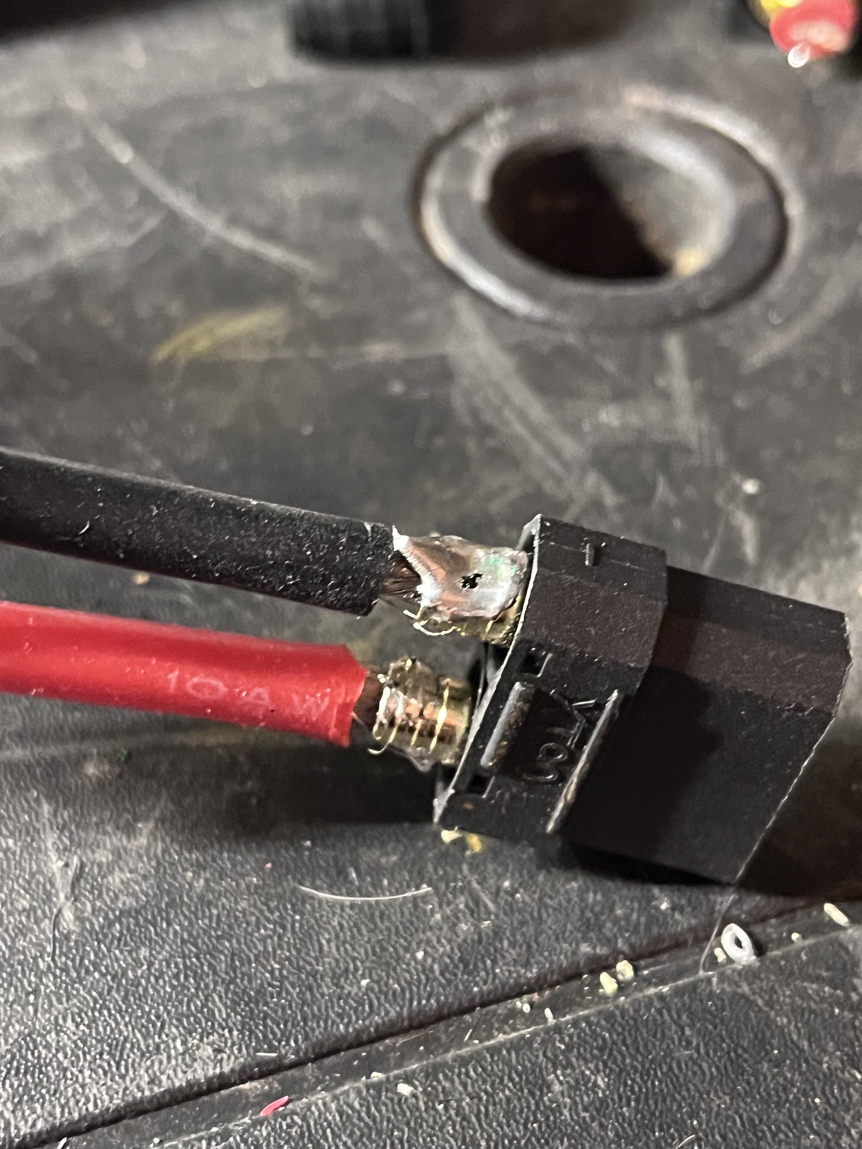 That said i have other overcrimps with small ears that seem to have no issues. I started dremeling the sharp edges off so the heatshrink was not getting tweaked there, and to hide the ears.