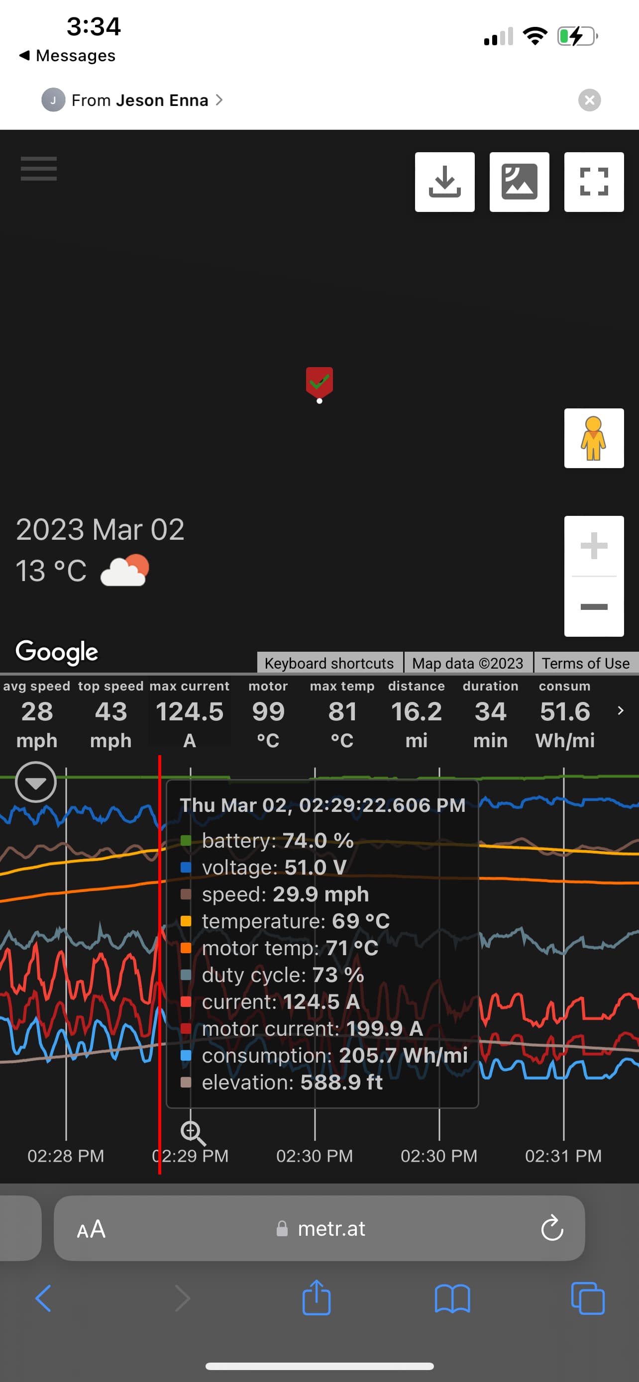 Very nice!!! I think your guys settings are similar. Sk8dad has the juicer pack so you will have a bit more voltage sag. But once your battery is in your new board you should be able to pull more watts cause you will be on higher voltage
