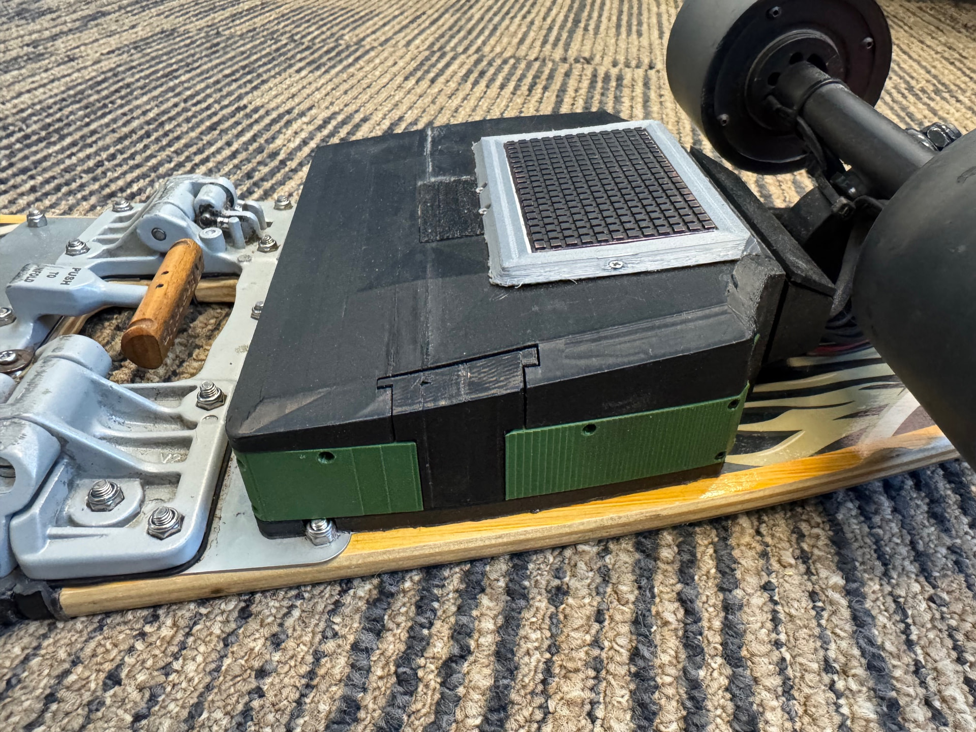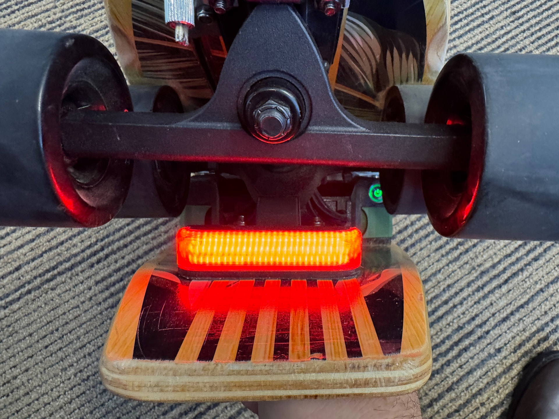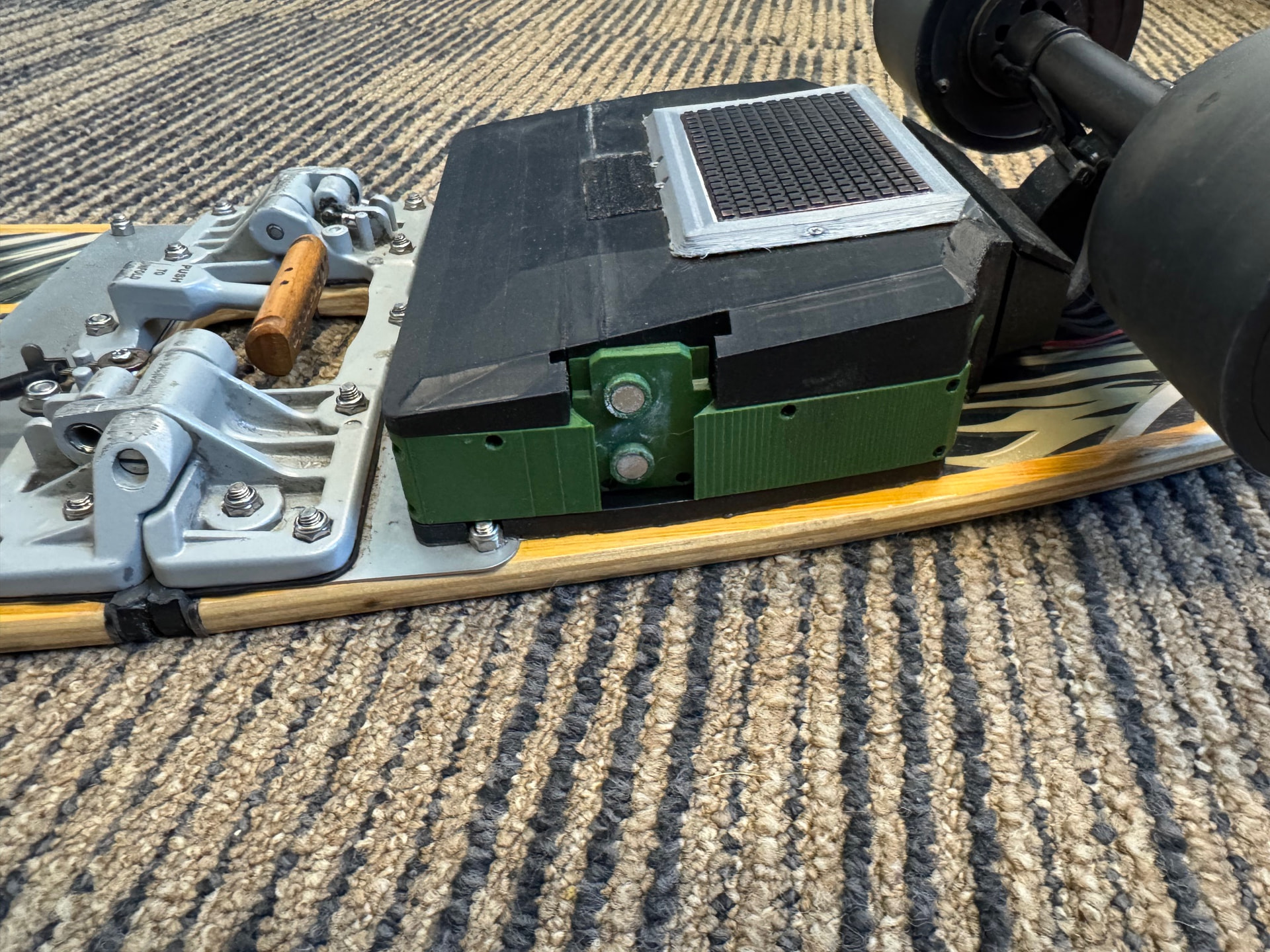 The setup is the version 2 boardUp model. However, the board was toast. Too much flex and no ‘spring’. So with some photoshop magic I realised a $39 Kmart cruiser would be a perfect donor board and I set to testing my assumptions and modifying. The trucks are basic aliexpress hub motor models.