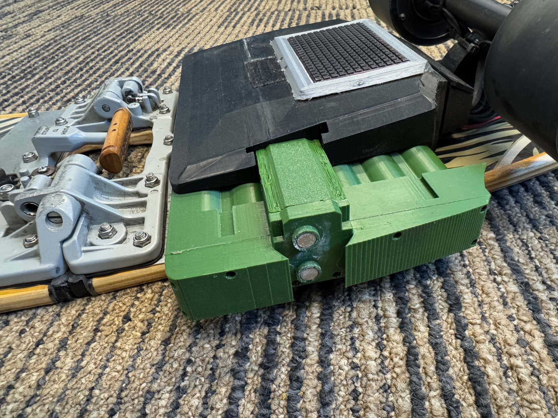 Reverse magnets glued to PETG latches to secure batteries