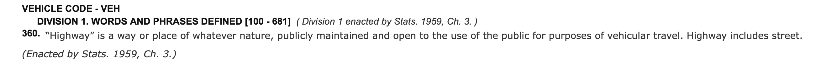 no because under the vehicle code all streets are considered “highways”