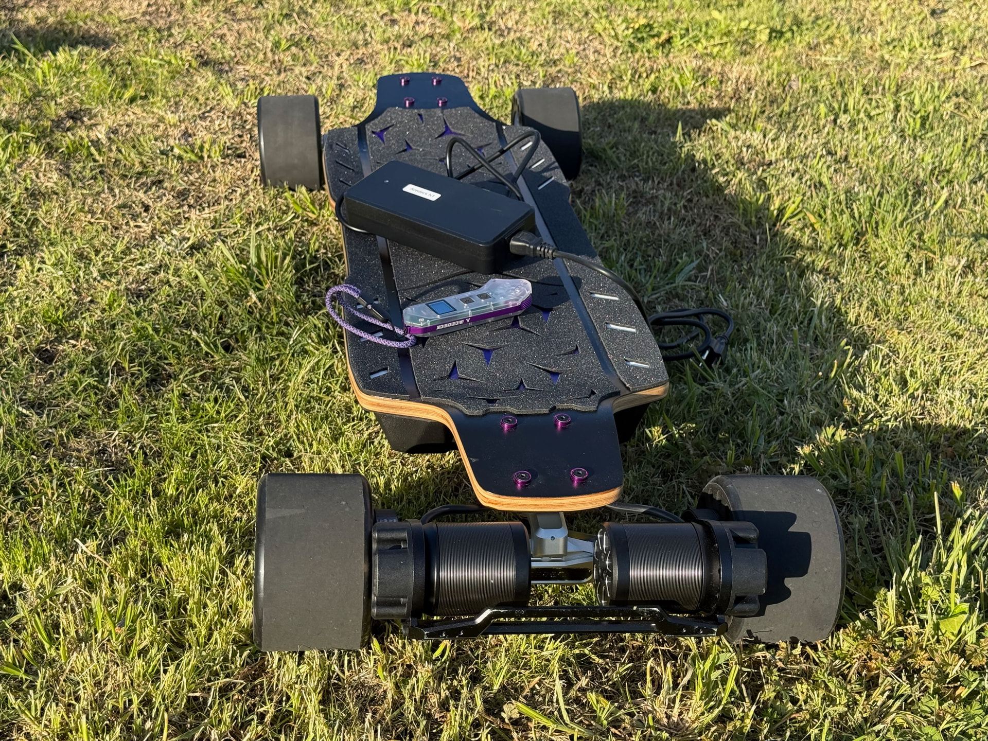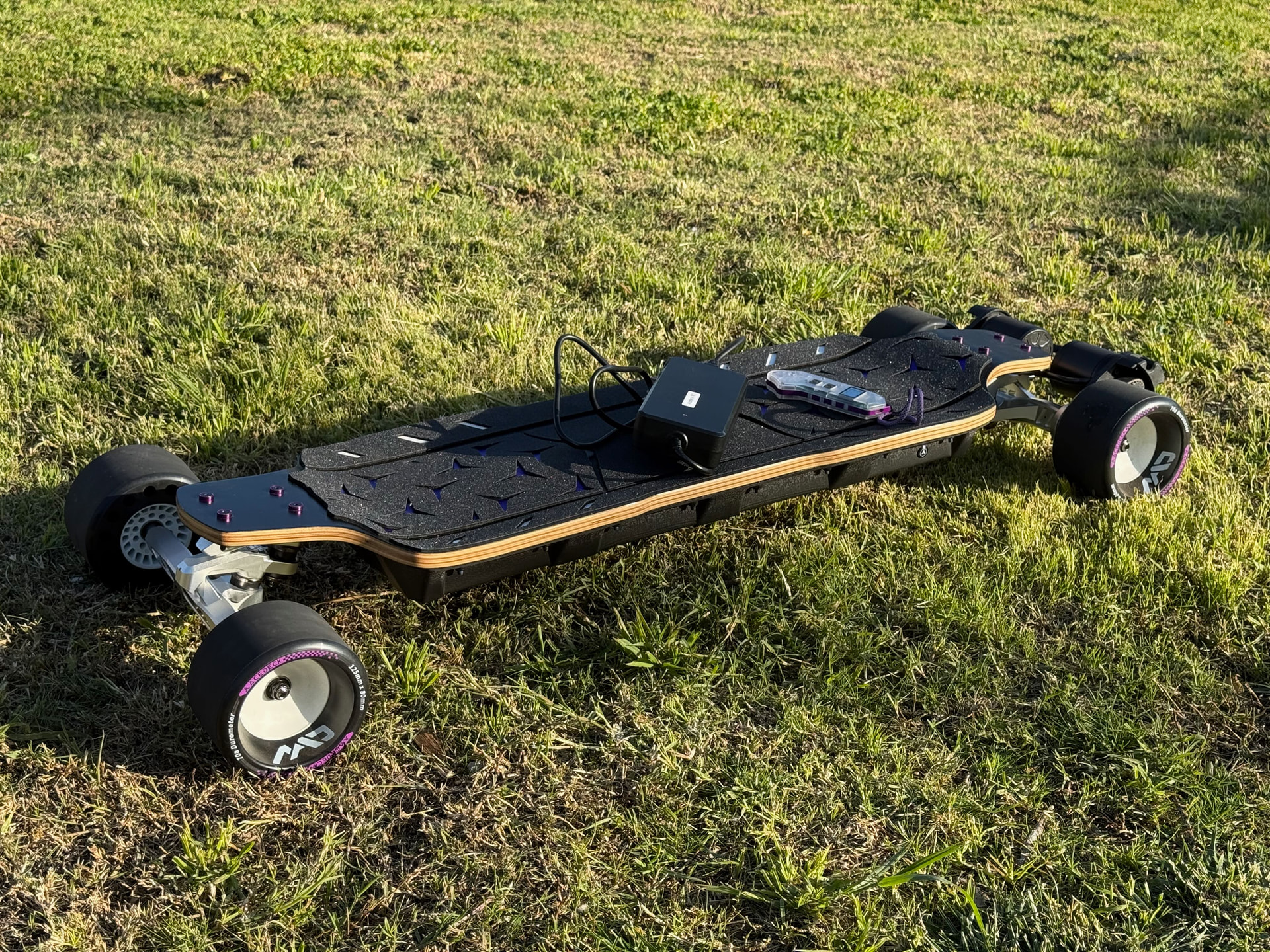 Description: Very lightly used esk8, I bought this last year with minimal usage. Comes with Linnpower remote in purple. Has scratches on the motor guard mostly from storage, clean deck, DKP trucks.