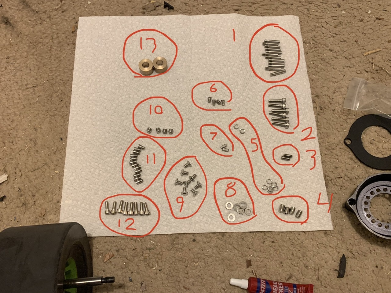 13: brass spacers (not sure where these go yet)