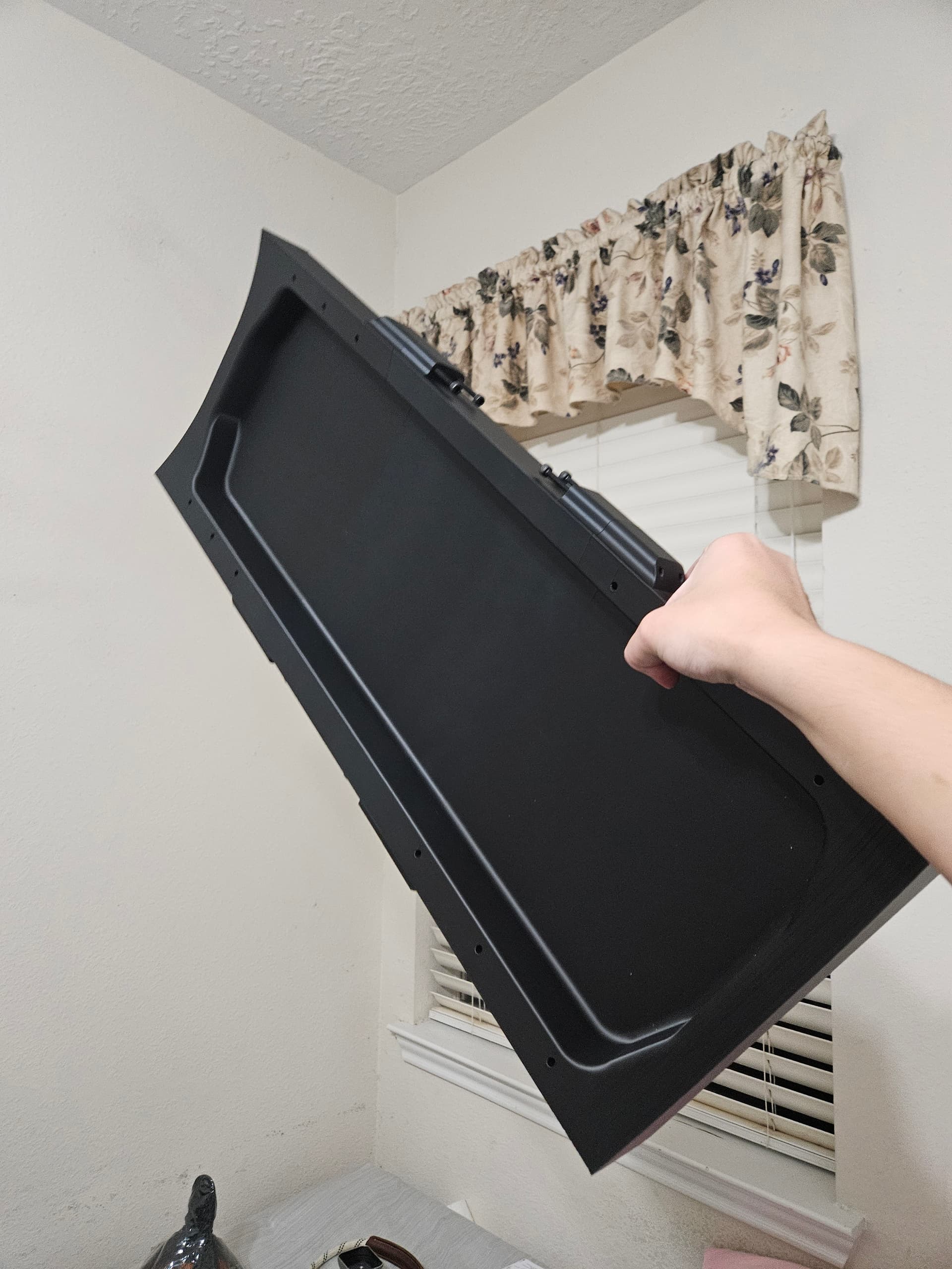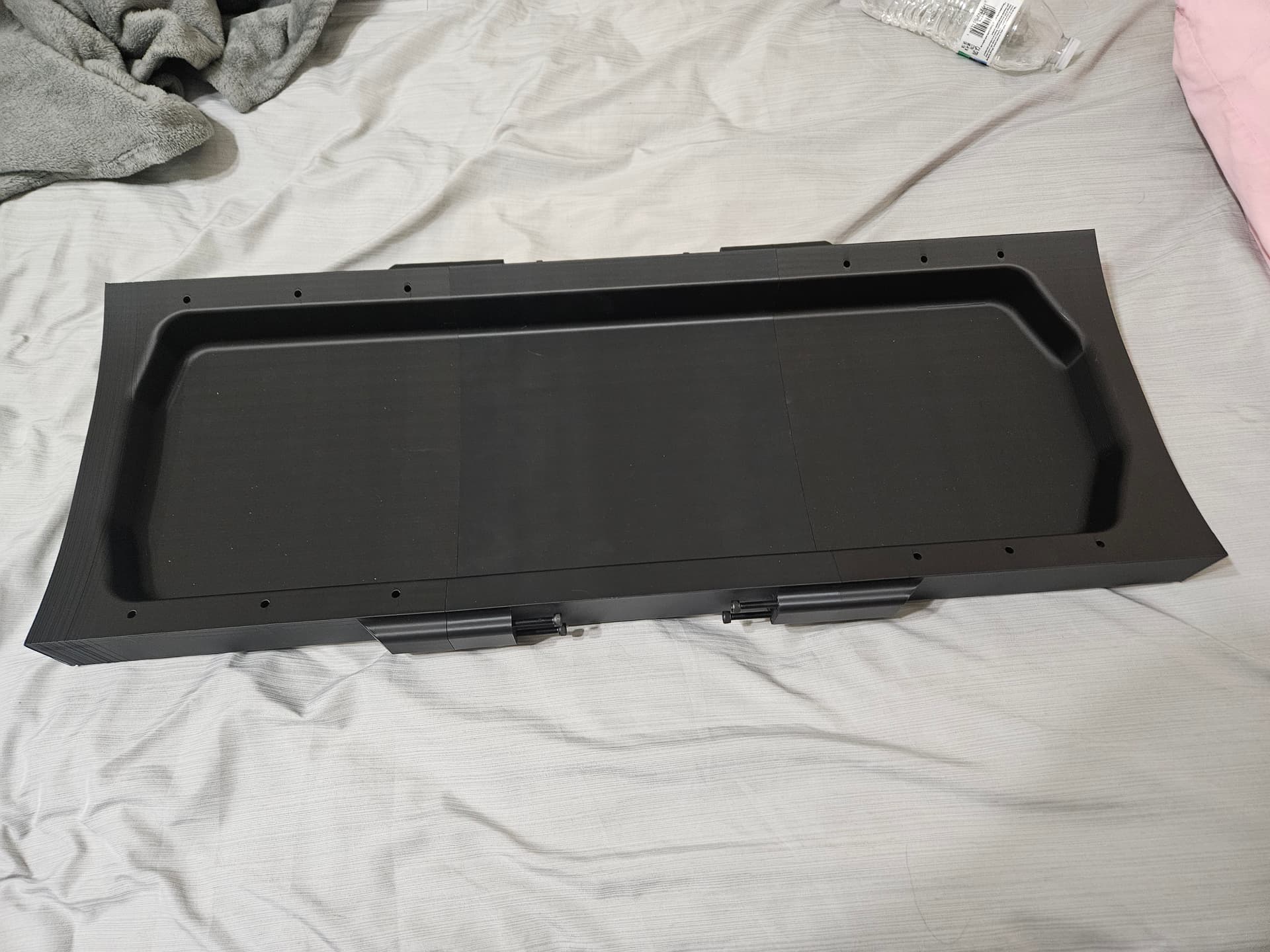 The first negative mold is done! Just needs to be sanded and filled in. Its pretty confidence inspiring that I’m able to hold it by the end without even having the bolts screwed in and its still rigid. It being 3 pieces instead of 12 definitely helps lol.