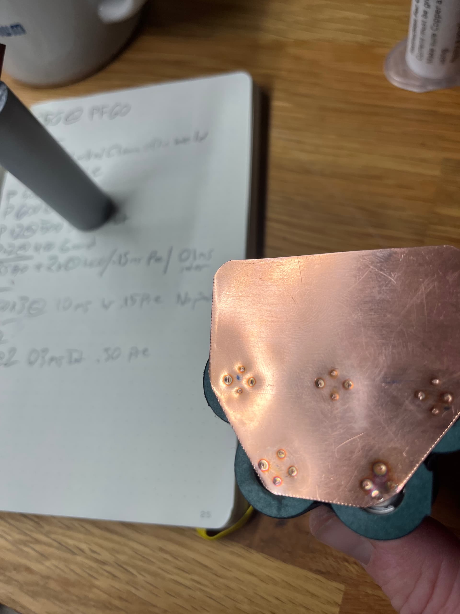 Then im doing the welds and it’s completely covered. Still getting the feel for this but im going to go from .3 to .25 copper in the future because the .3 i found is too hard and i have difficulty burnishing a flat spot to see the cell through the copper as well as i like and my welds aren’t as accurate as i want them. Nothing bad but not 100% perfect yet.