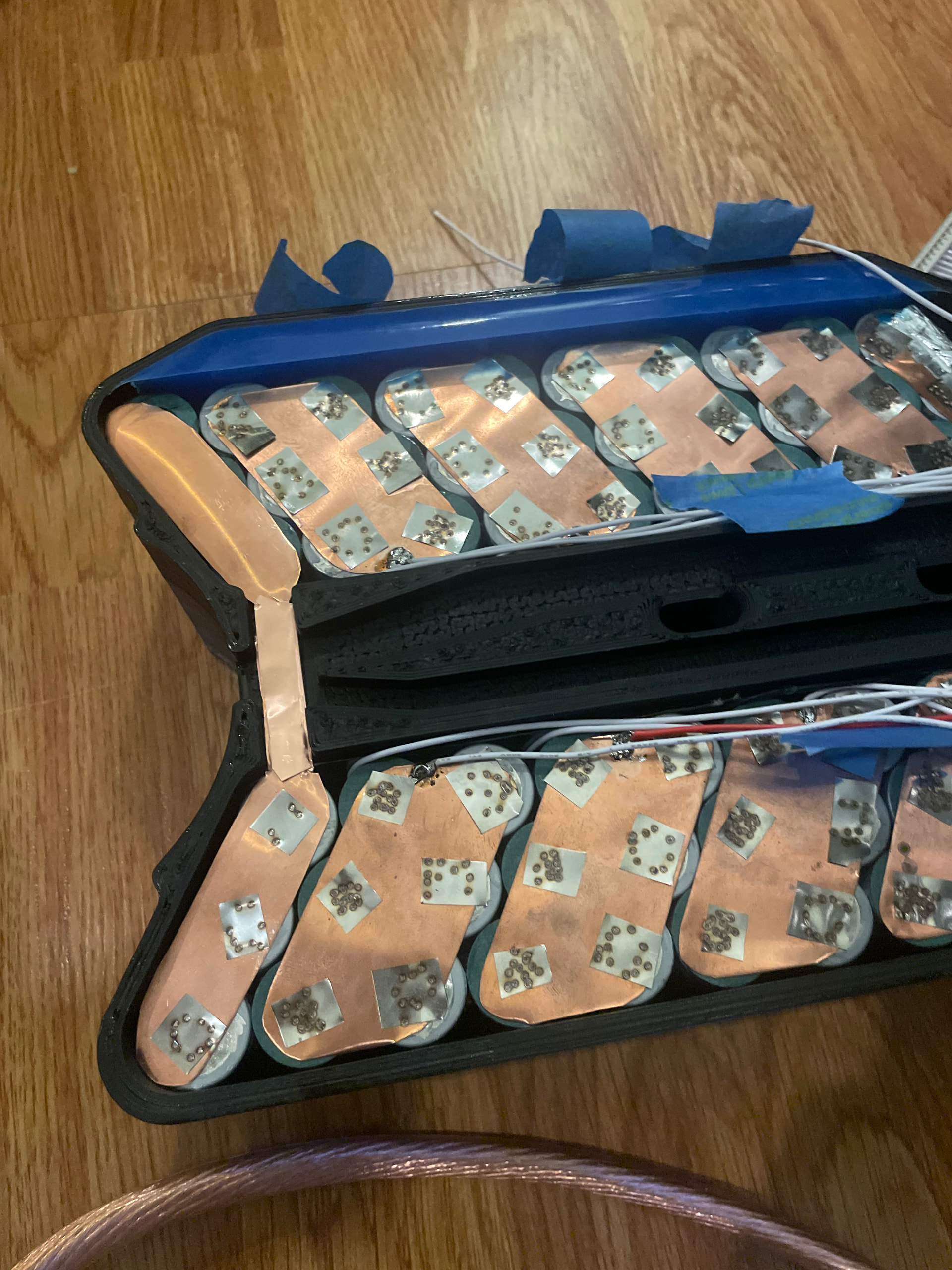 I am thinking I can weld two strips, one pair of welds on each strip, with tabs opposed to each other on the same side of cell. One strip uses flux, the other does not. I got the settings and technique pretty dialed in on the 0.2mm copper under 0.1mm stainless.