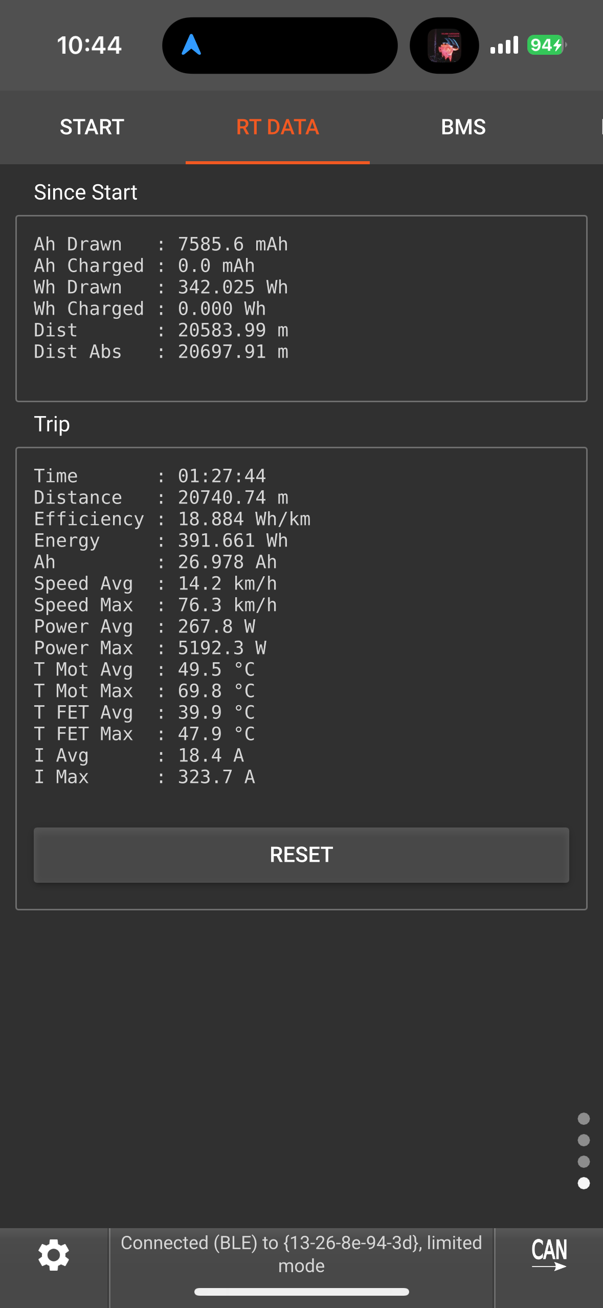 Temps were around 65c ish max, Avg 57c mosfet side when accelerating and braking really hard on flat roads, and motors were around 70c max and 58c avg.
