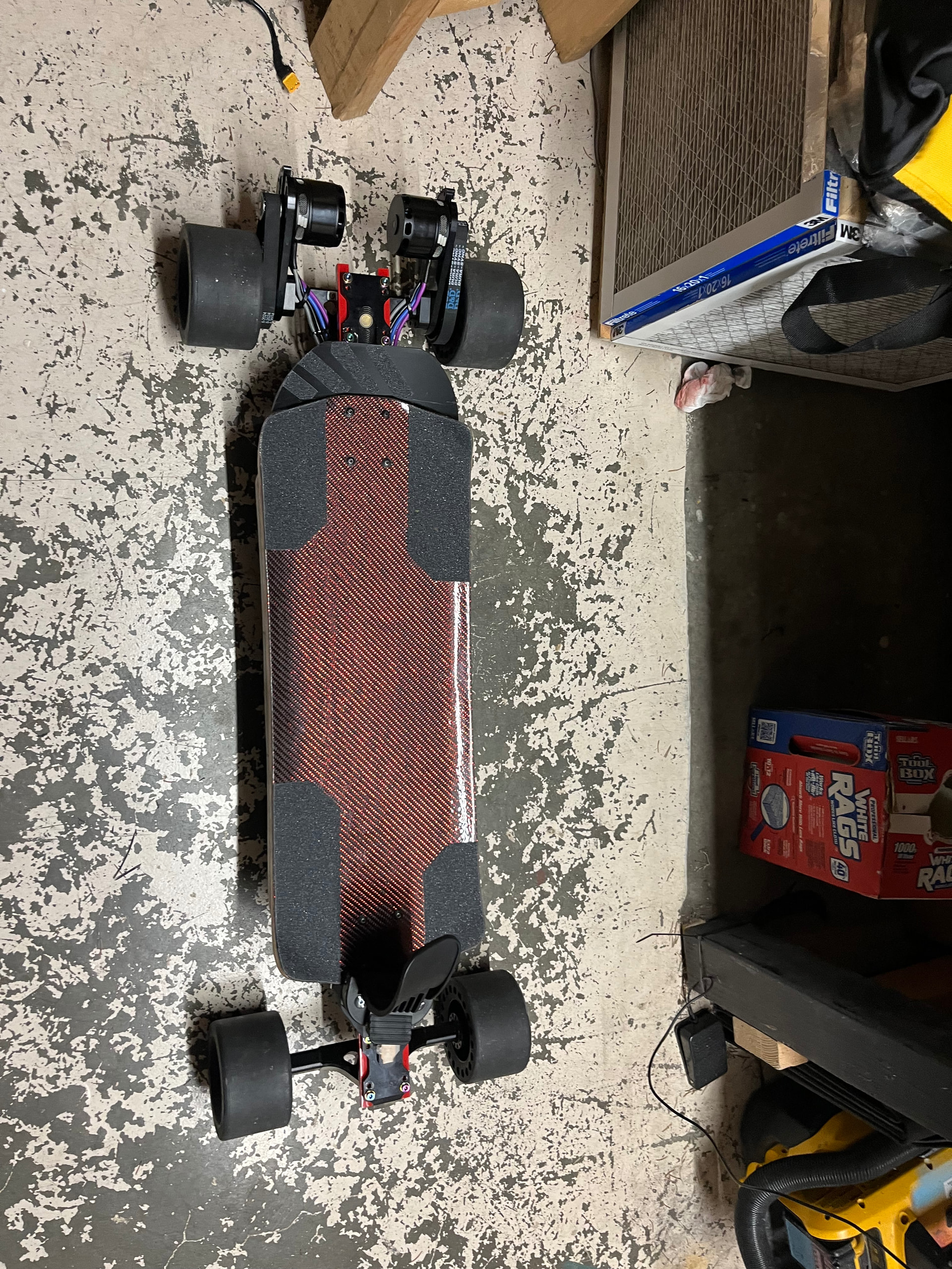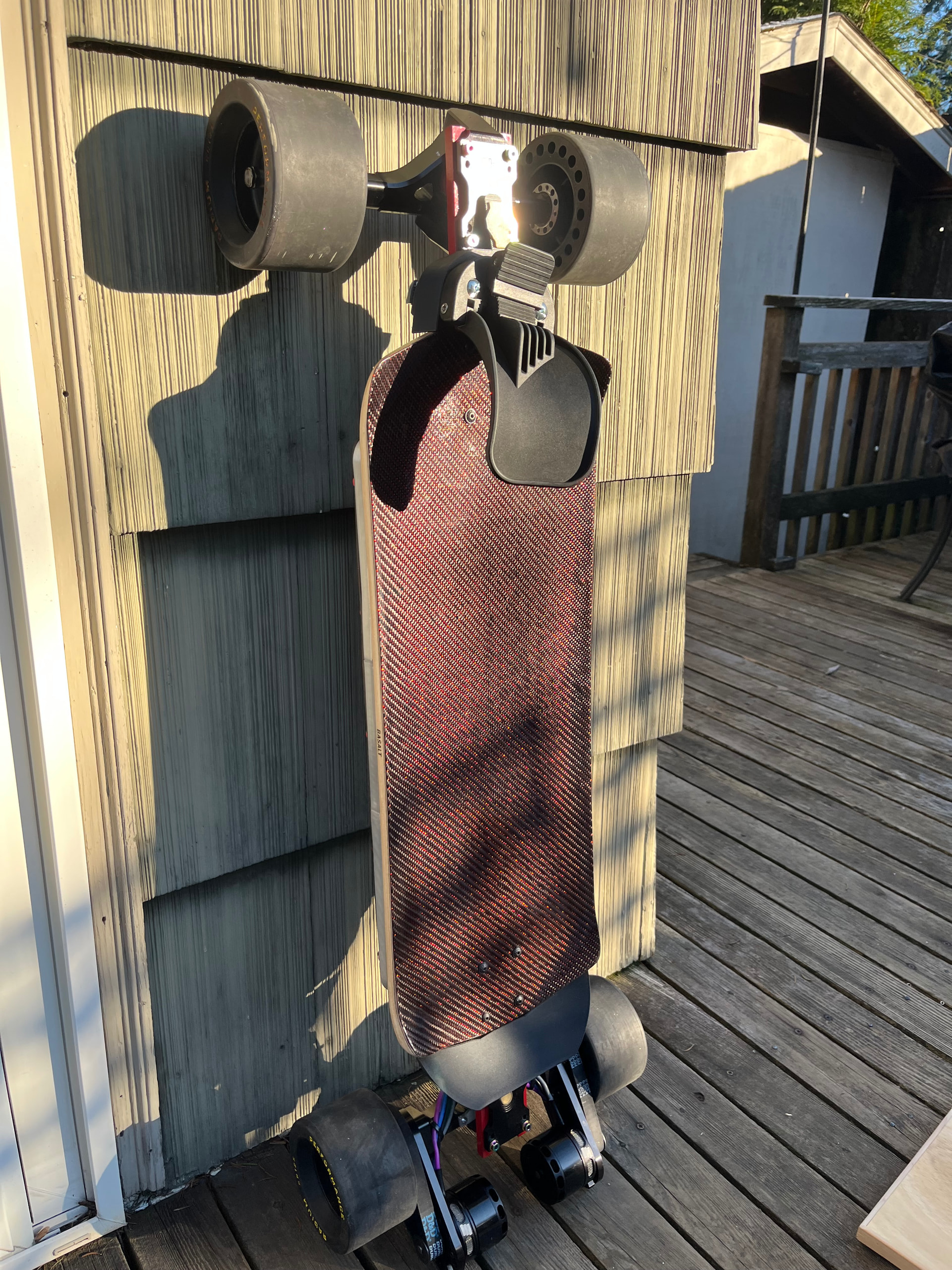 Goal of this build is to play around with this tangent deck more than anything. really enjoy riding this thing analog and wanted to put some motors on it without changing the feel too much. how light and nimble it feels is a part of its charm and i want to preserve as much of that as possible. But i kept changing what i wanted to do with it. At first i just wanted to stealth some hubs on it and make a medium range commuter, then i got my sportster build second hand and tuned that up how i like and don’t want to double up in the quiver, I have a lot of boards and have been selling or trading off the overlapping ones that just don’t get ridden enough. It would do a great job i think in that role but it also has so much potential to also explore.