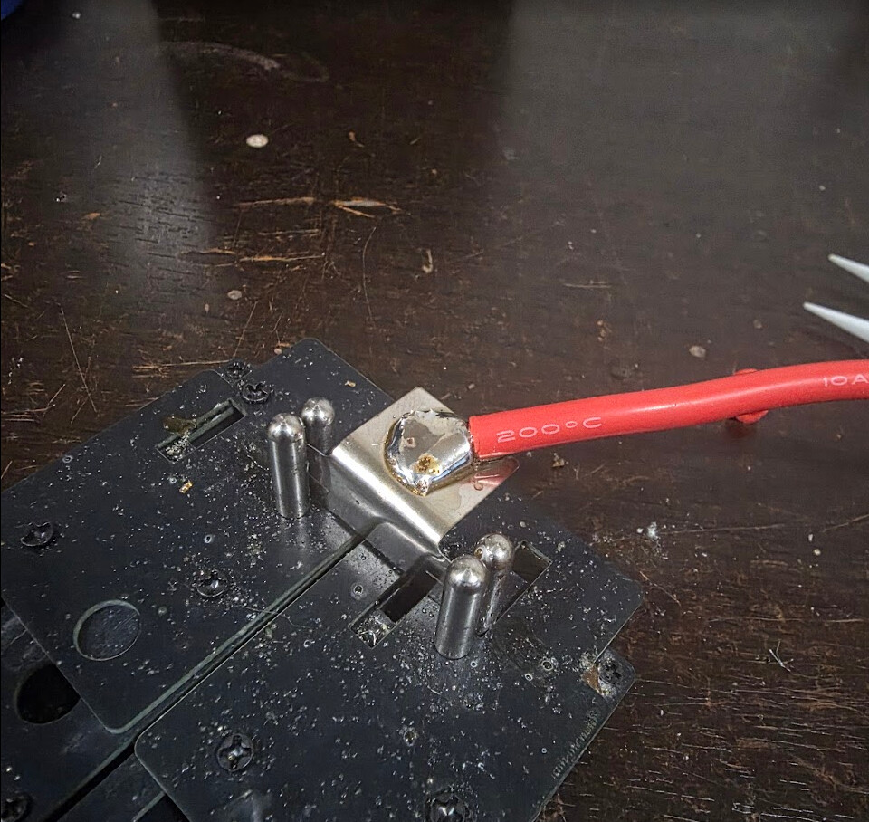 Those ugly spots, is that something getting burnt in the process? I tried to add some solder to the tip before soldering the lead and blob together, feels like it may have been on the tip too long.