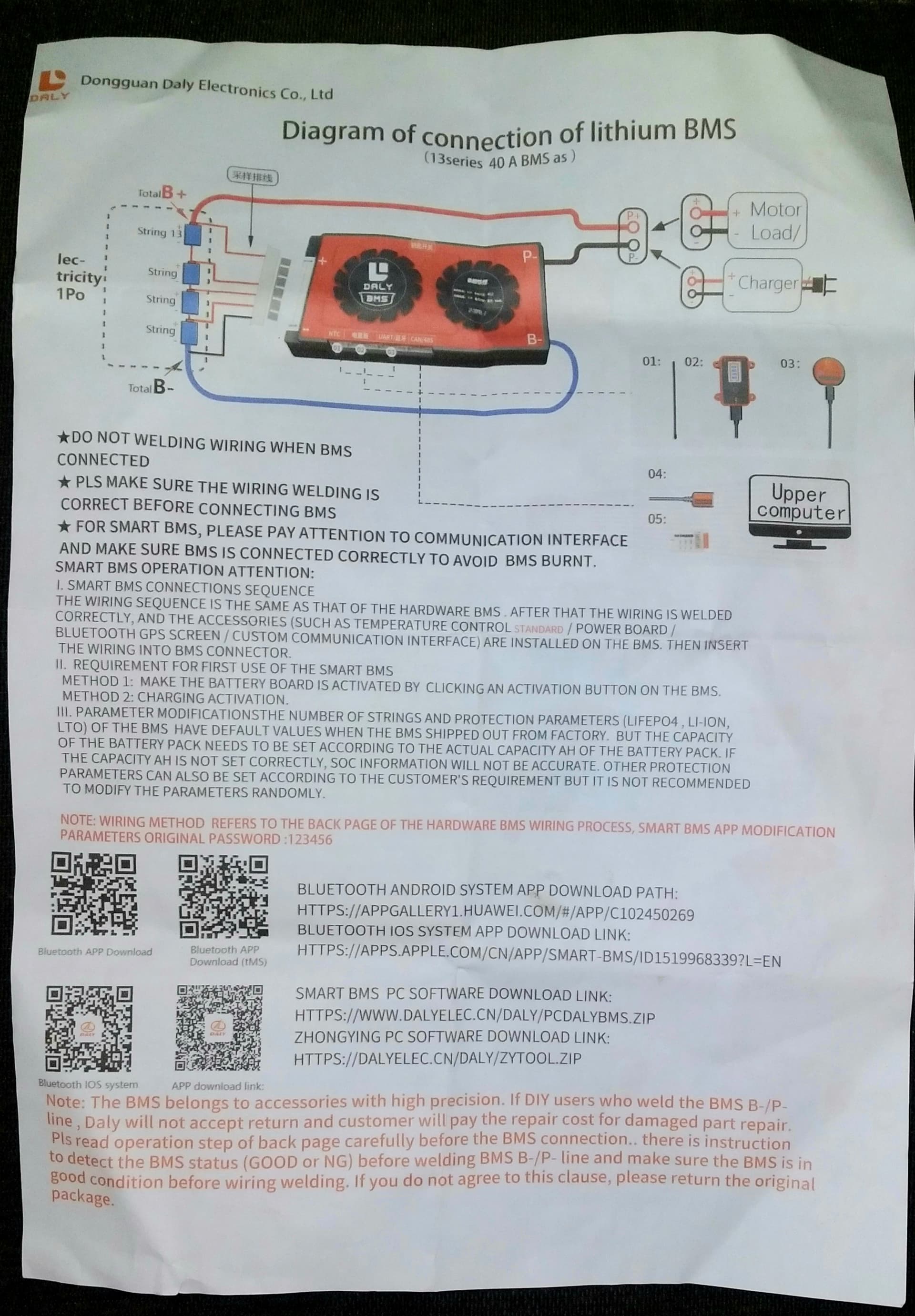 Here is the other side of the paper with directions for a smart Daly BMS.