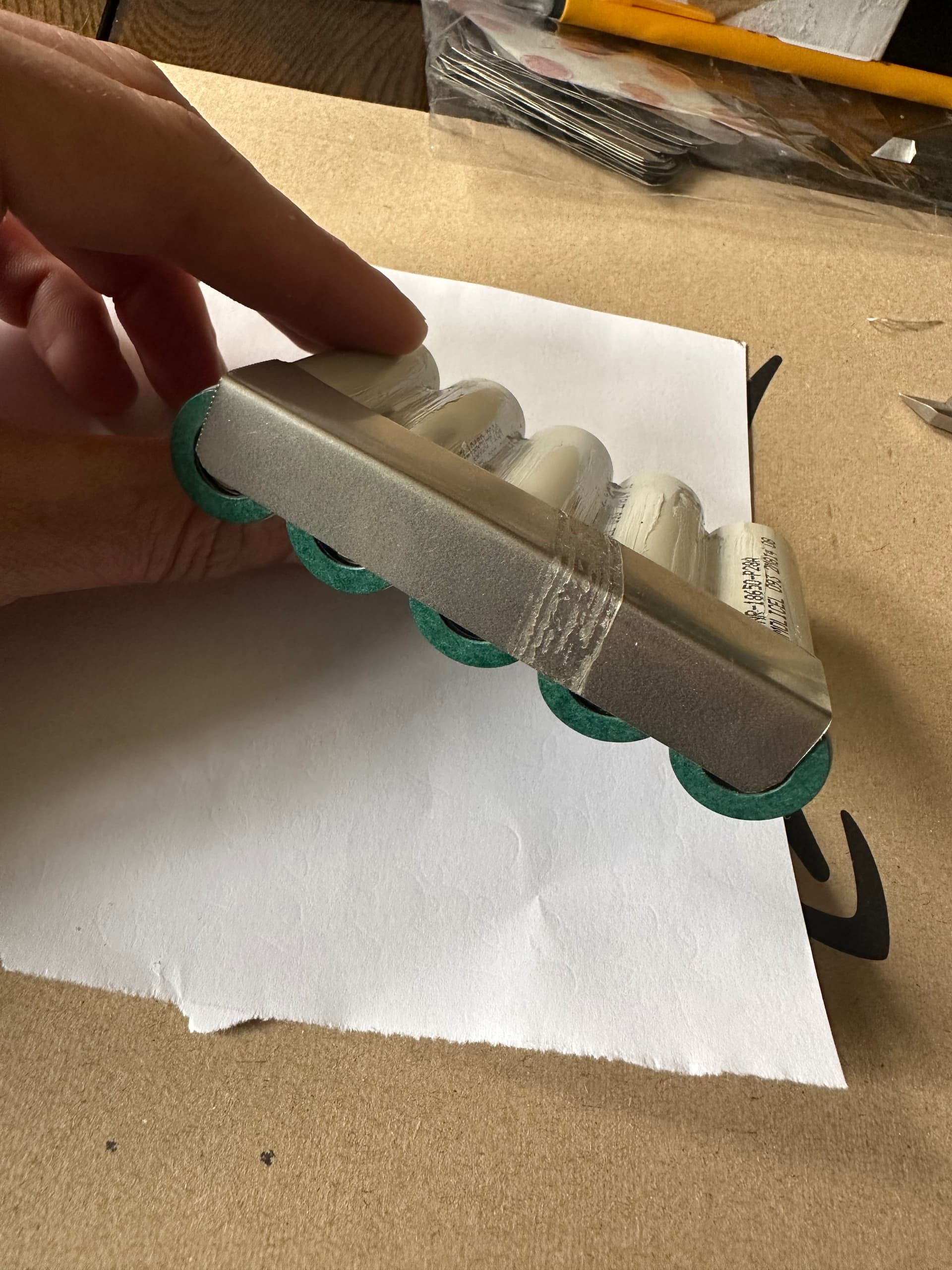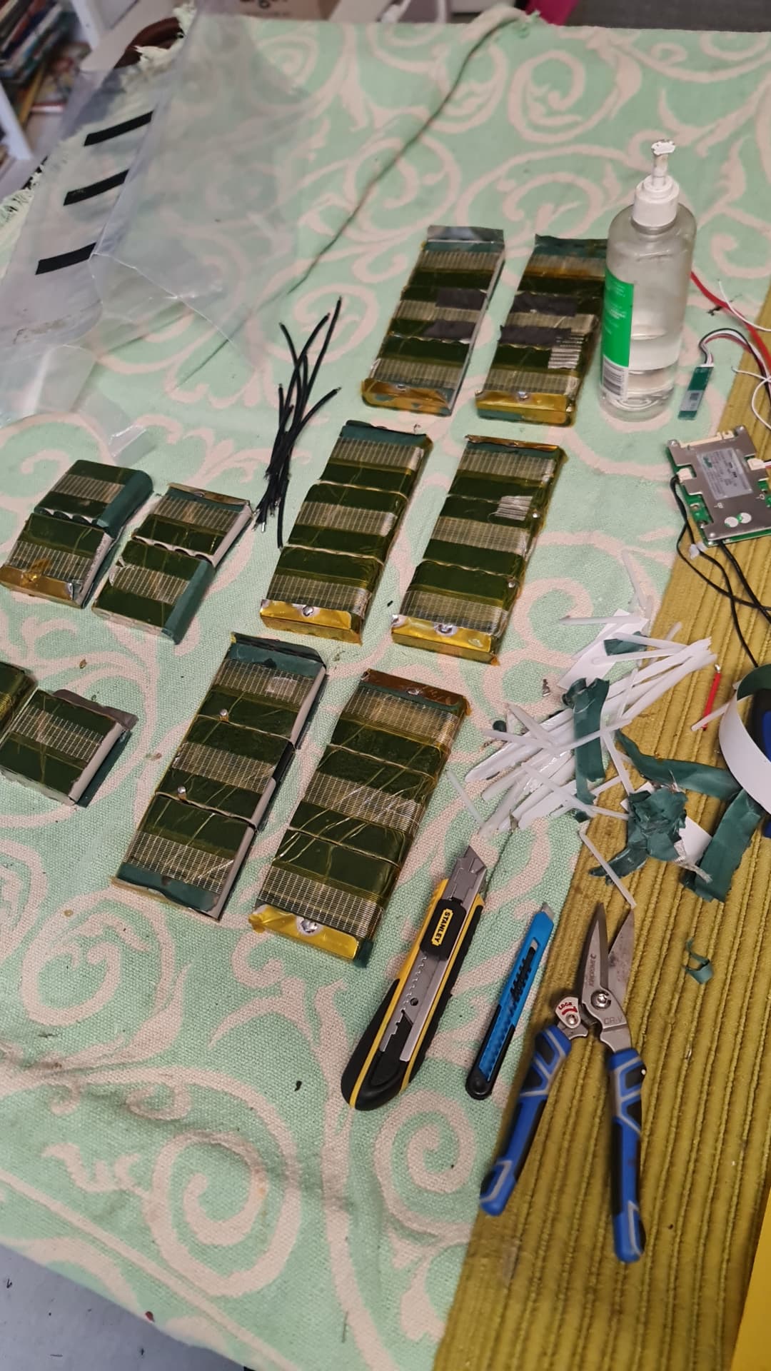 Not quite as simple as I thought it would be to break down. A stanley knife ended up being my tool of choice to split the 8p groups in half but I still shaved the edges of a few cells causing a few little sparks  .  They’re still all testing same voltage so hopefully all ok. Ill build my pack with the cells i sparked just in case.