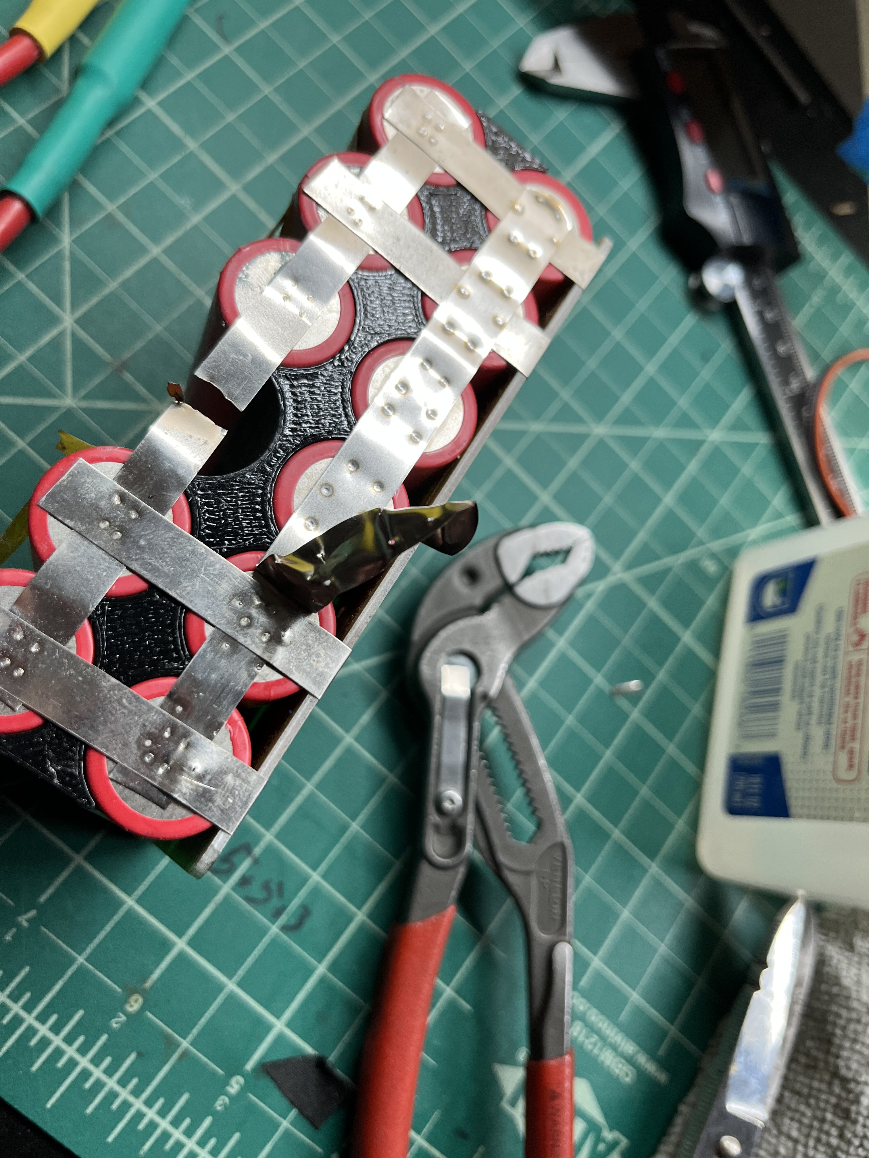Need to finish that, and then cinch strap it to this board I guess, and make a new 10s2p battery with low IR cells…