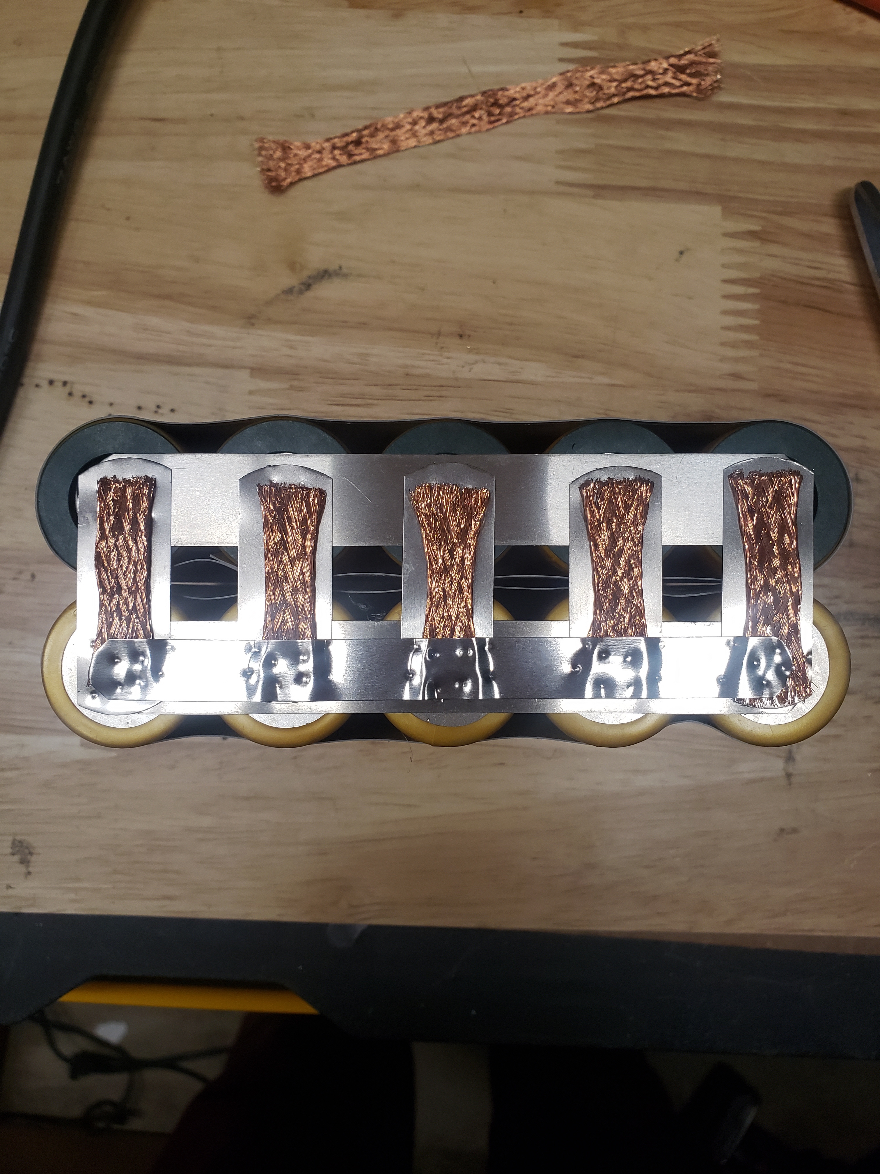 I think many people have had success with the folded nickel series connection, some people may squawk though, stating that nickel won’t flex too many times before breaking.