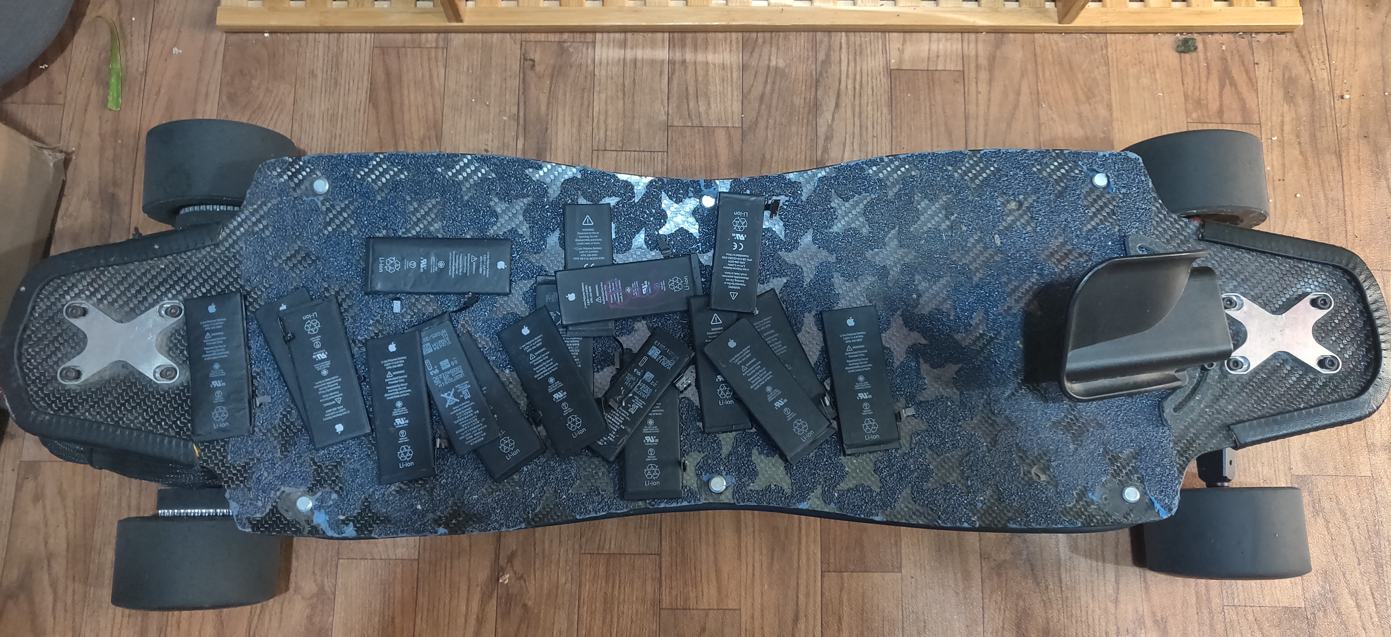 I used 3200mah 10A cells. Next step is probbaly upgrading the esc to a vesc, something small like make maker x dual. The battery can only do 40 amps continues. That should be plenty tho!Also I am thinthinking I can probbaly get like 10-15 full charges for my phone out of this battery lol.