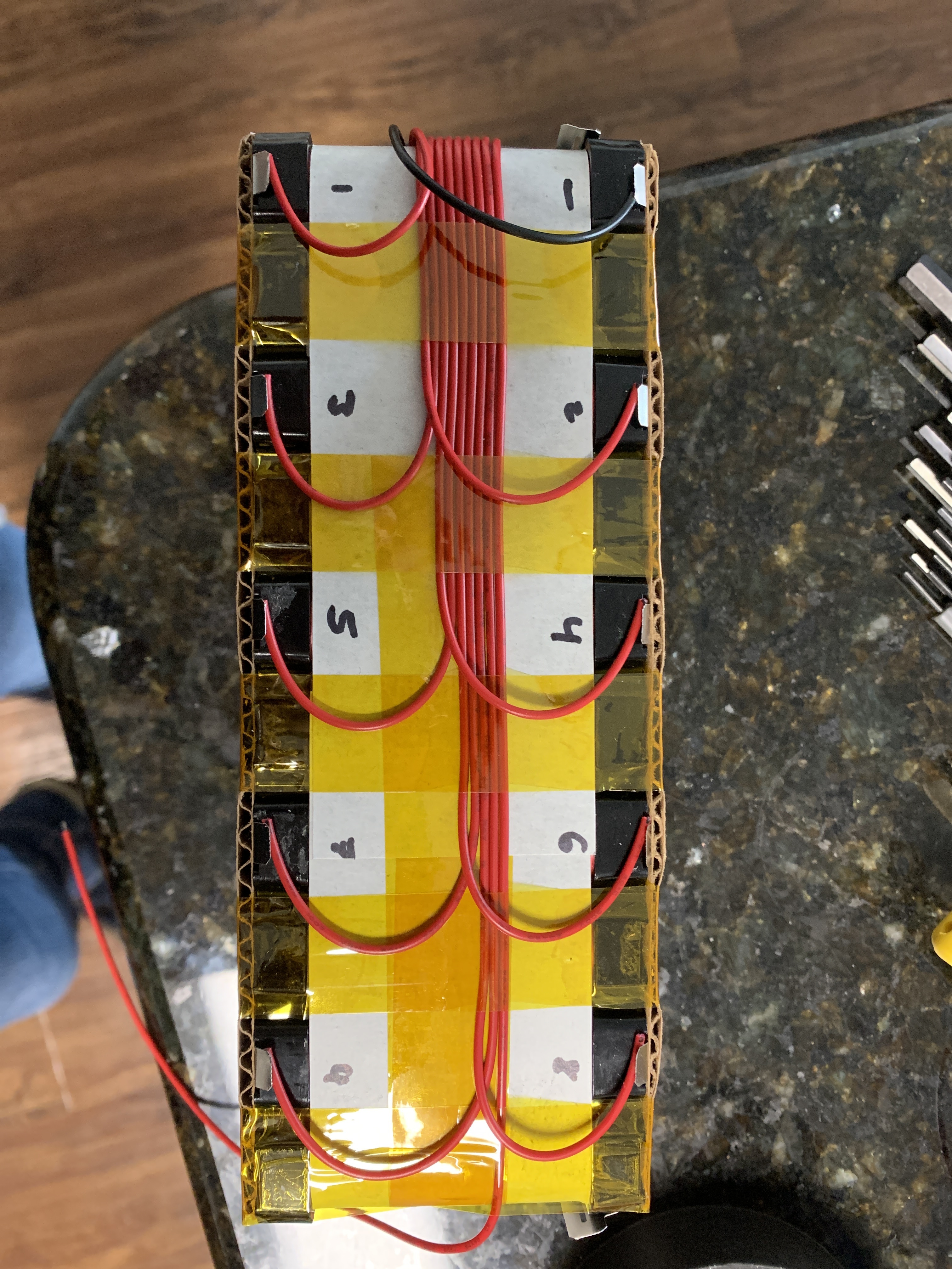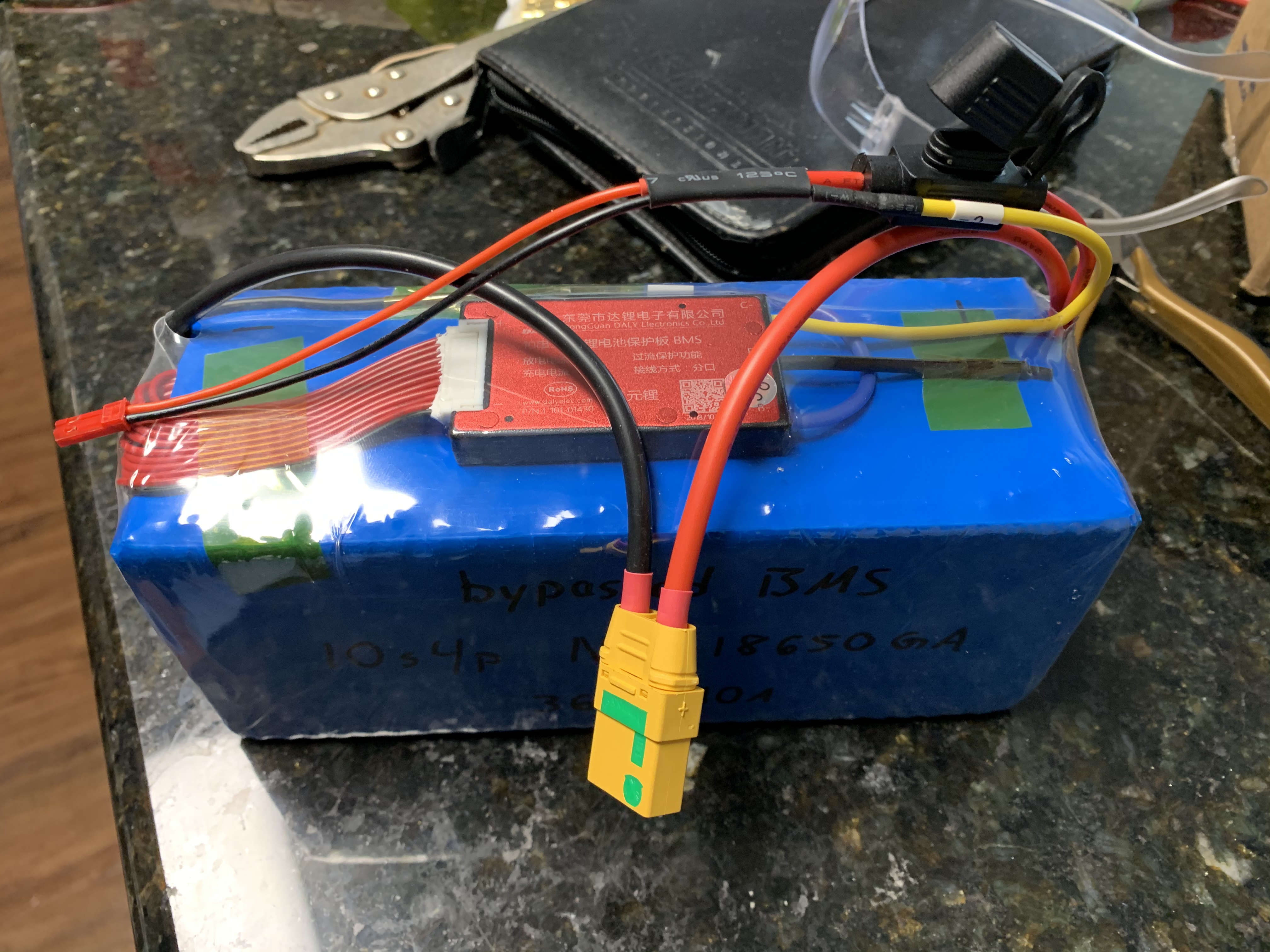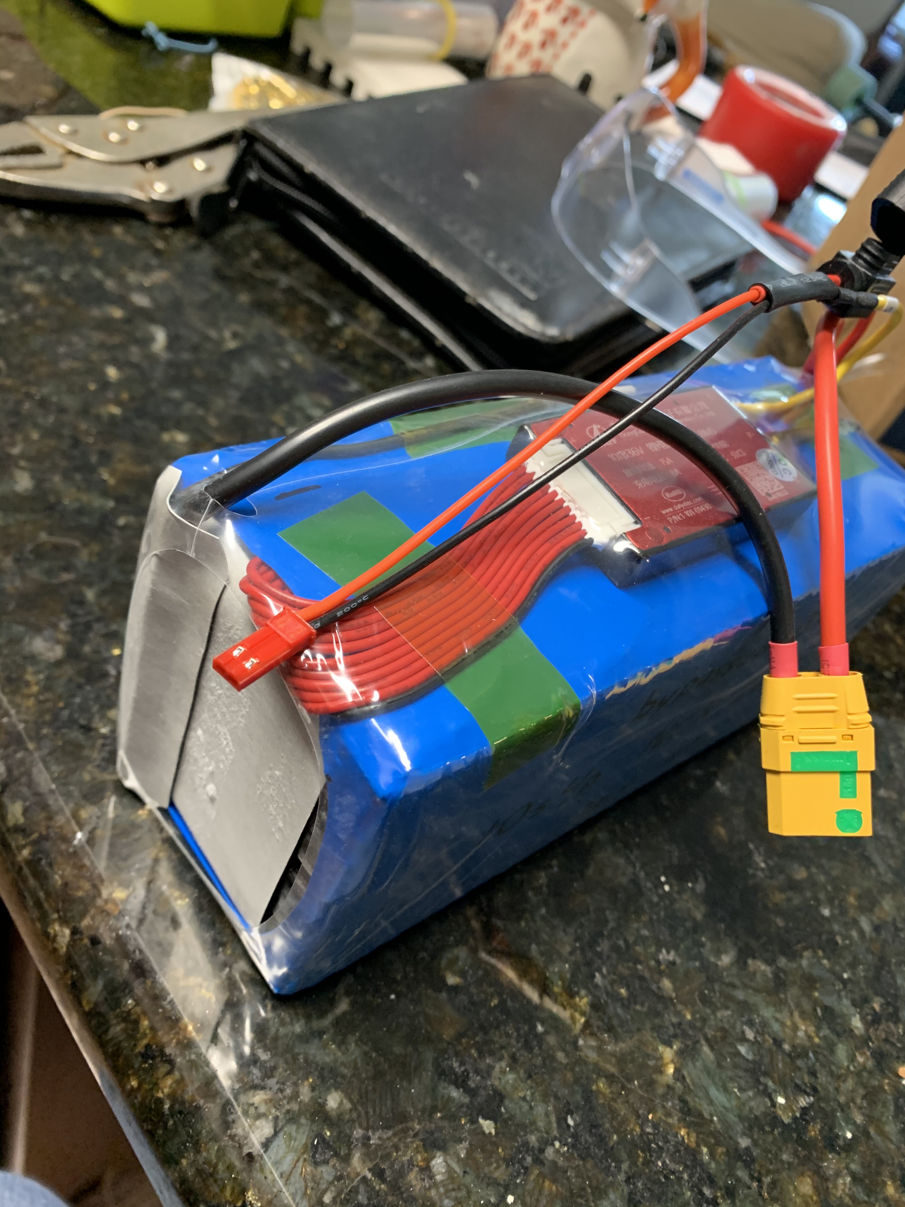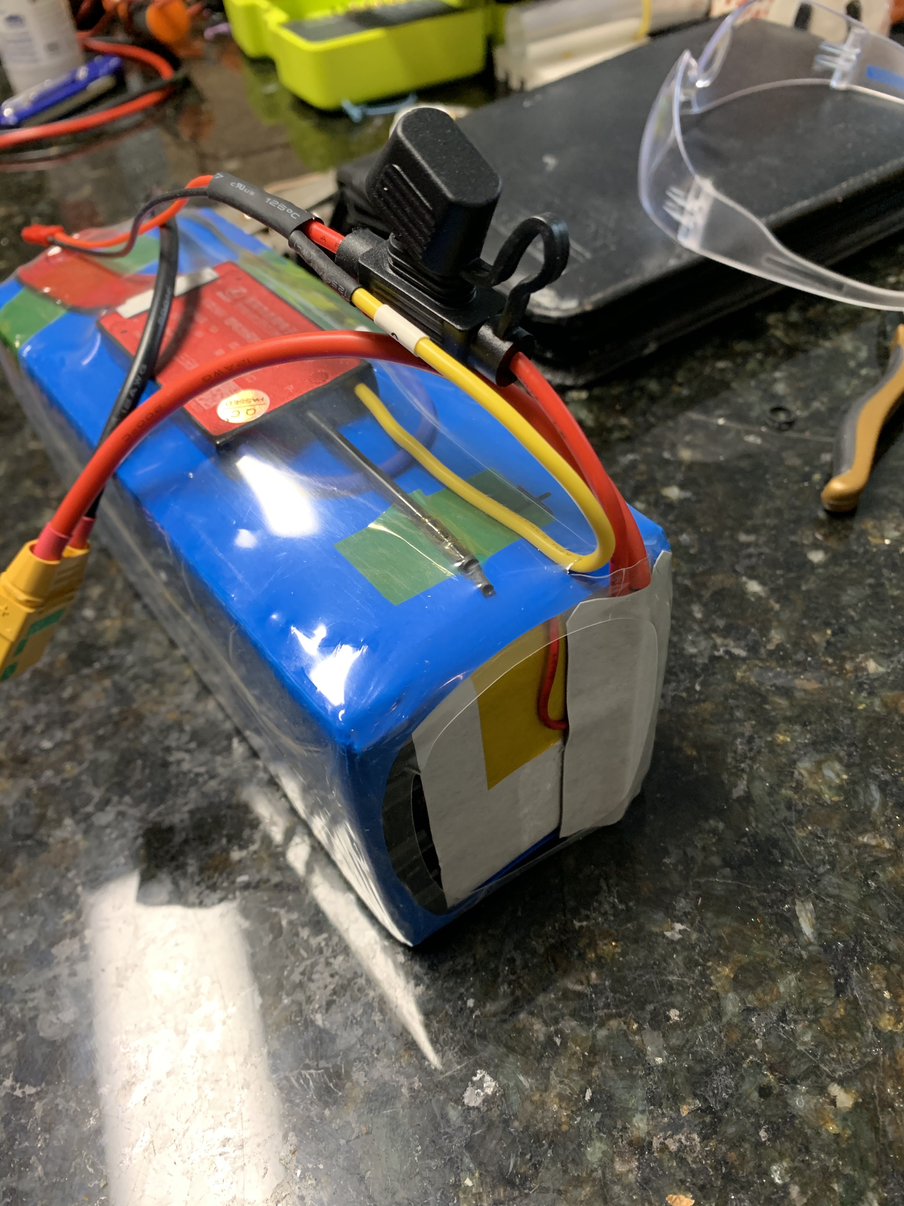 I’m very happy with how this turned out… everything is well insulated (plastic holders space the cells out, fish paper rings on the positive terminals, all nickel has been rounded, all balance wires are layed as flat as possible with an ass load of tape and fish paper, there is a card board plate on the nickel and fishpaper wrapping the cells, it’s been double heat shrinked with the wires coming through little slots), it looks pretty, and it’s idiot proofed (XT90s termination and 5A fuse wired in). I feel this is good enough to give to someone I care about