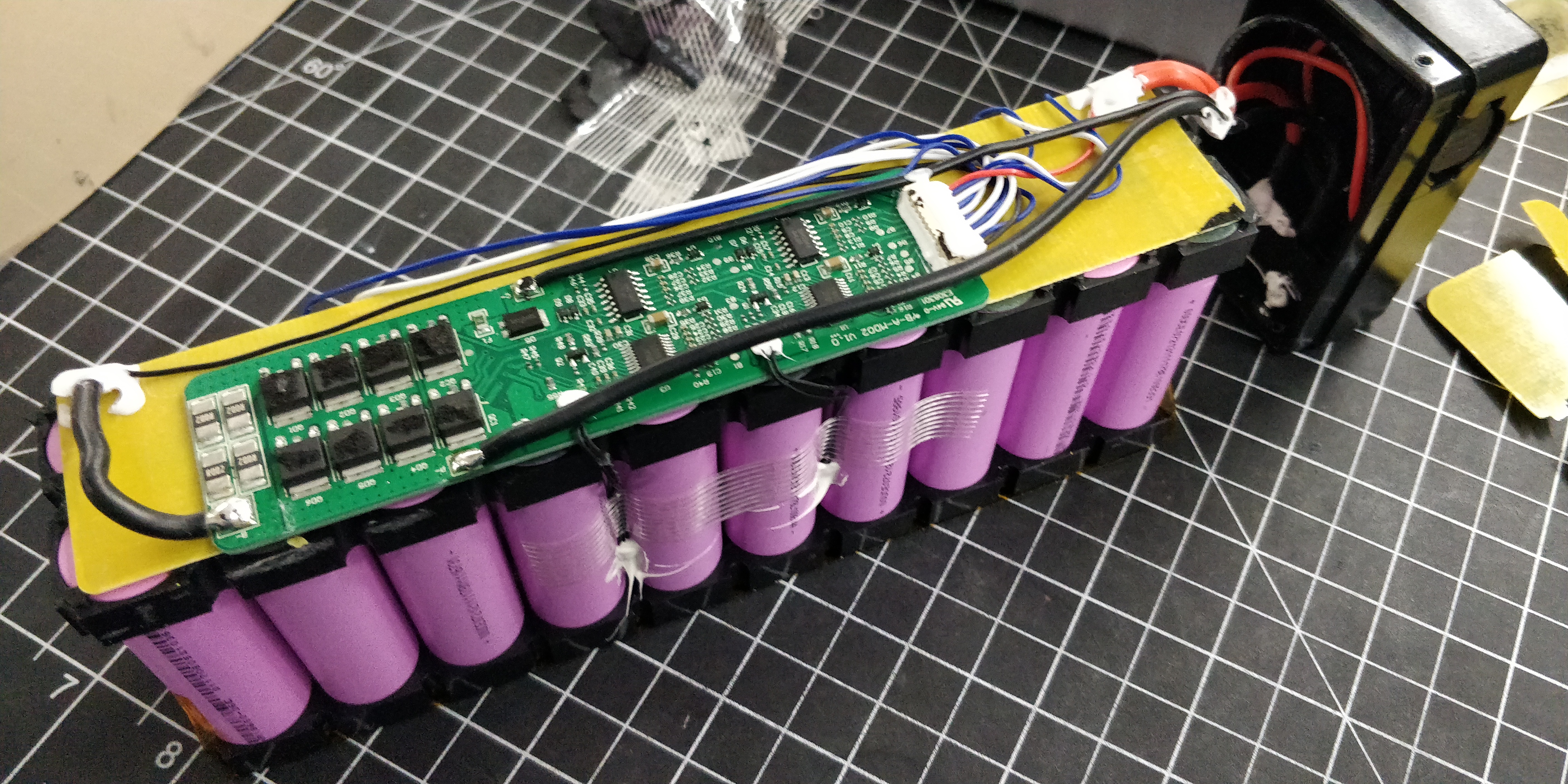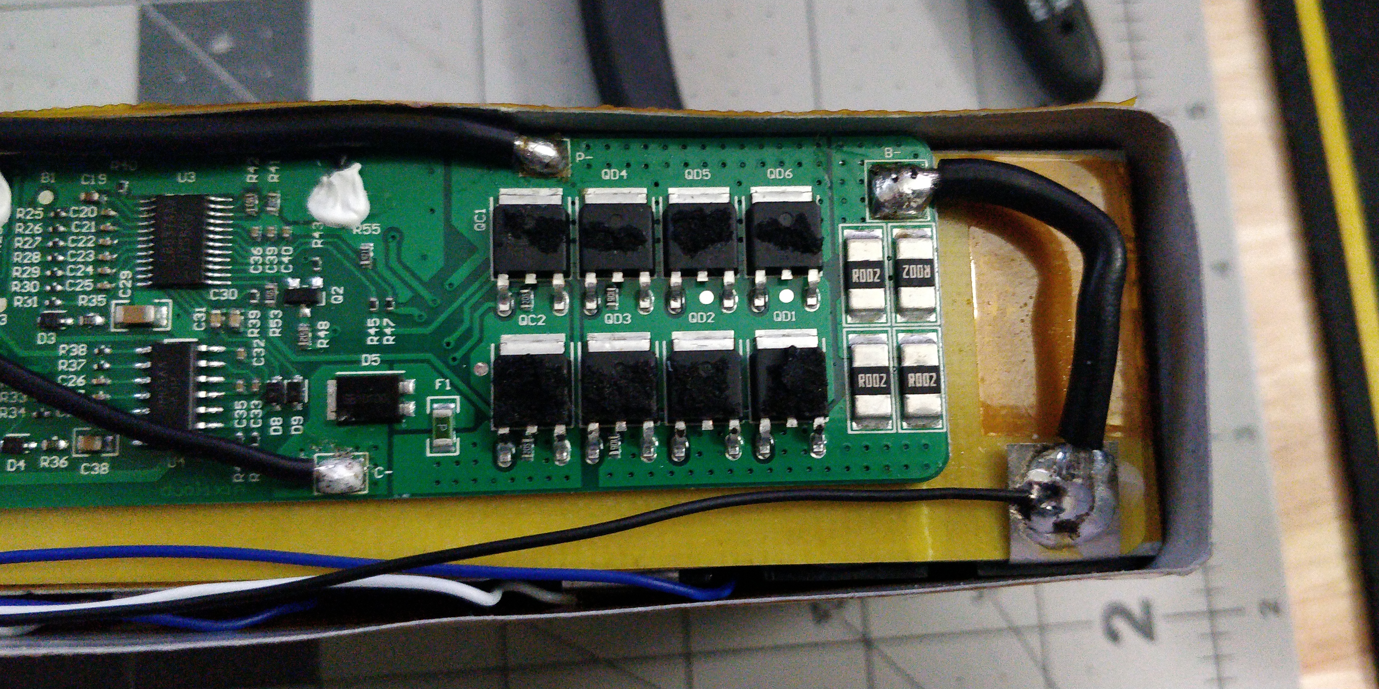Rebuilding this 10s2p for my friends scooter due to a bad P group. Built the pack and I hooked up the BMS as it was originally but not getting any voltage out of the main connector (which is connected to battery positive and P- on the PCB)