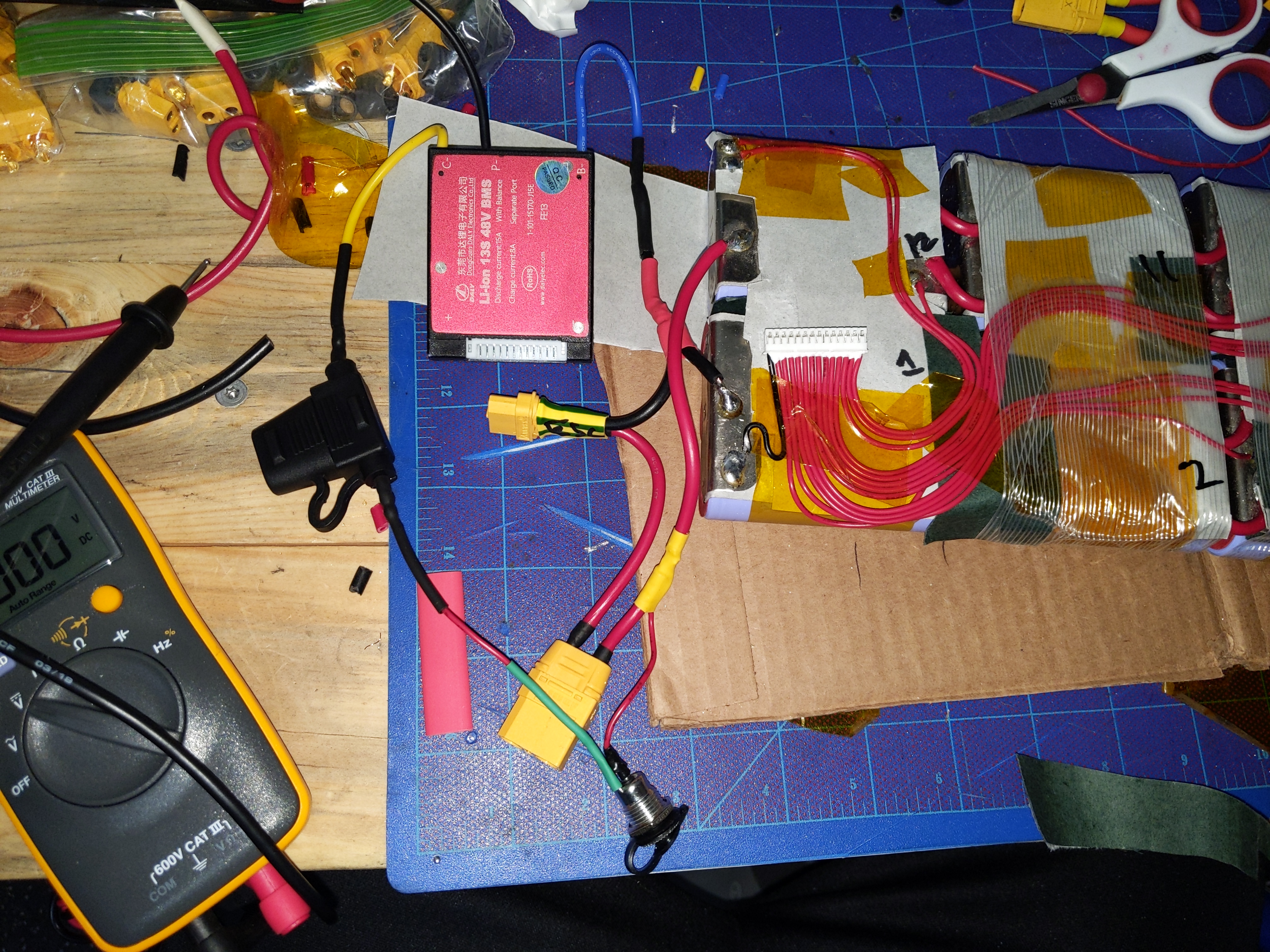 So I think I shorted my Daly BMS. Just got everything all finished, charge port and loop key and everything and went to plug in the BMS at the very end and got a spark near the end leads. I’m not readying any voltage through the XT connectors either. This is a 13s DALY BMS and I followed this diagram to wire it for 12s: