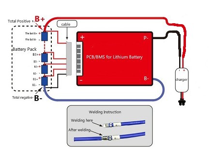 For this BMS you will follow that diagram exactly as it is written, but only connect the “charger” circuit.