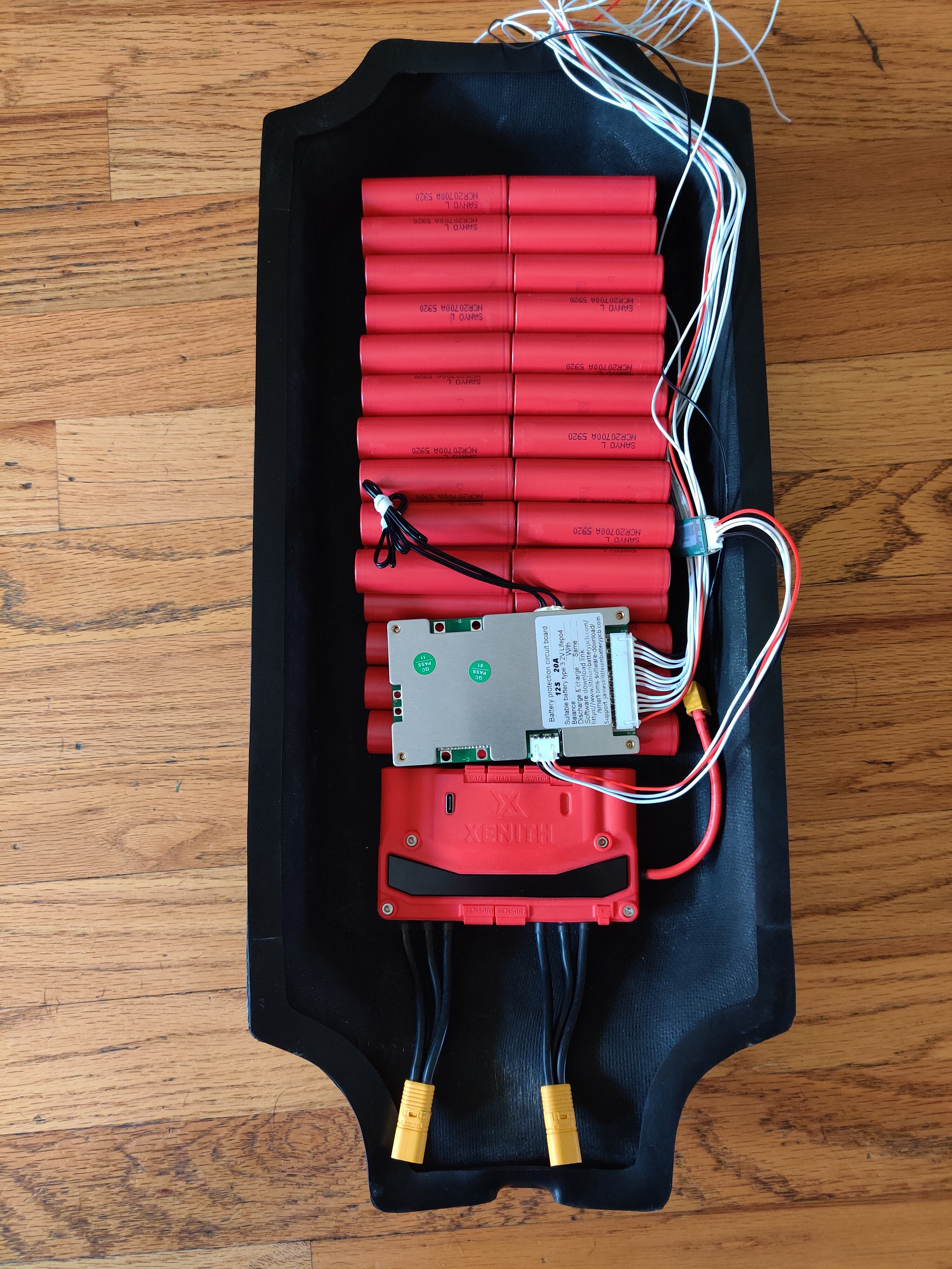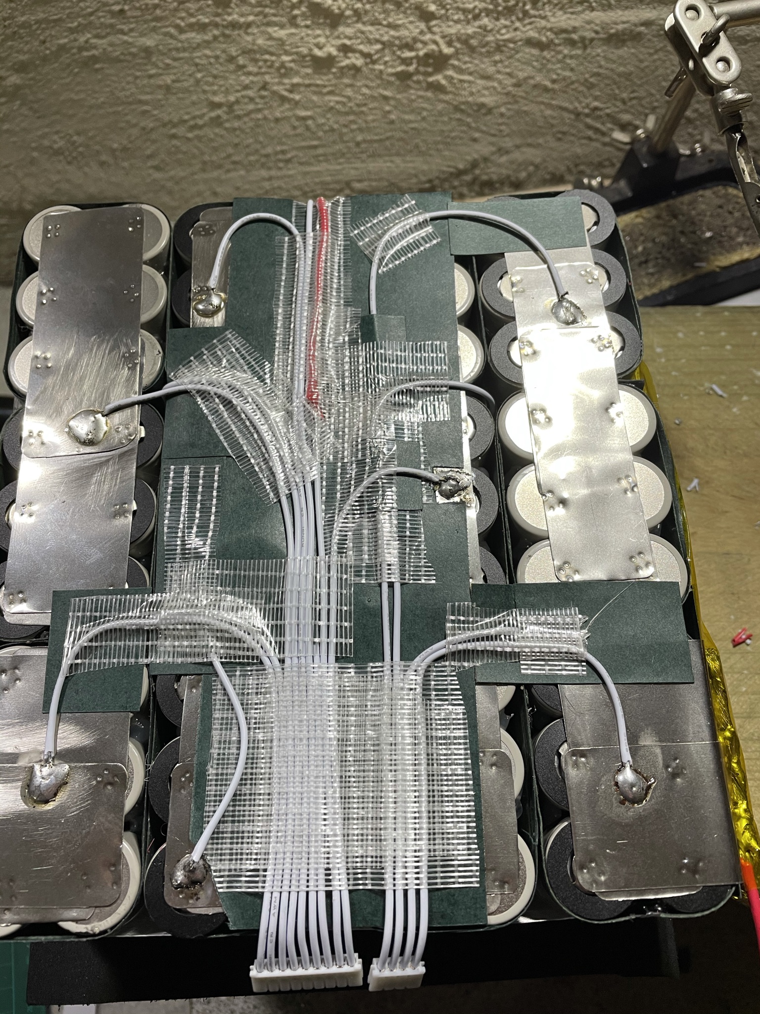 I did my best to prevent BMS leads from touching. Another lesson learnt in battery building is to be sure I test the BMS position first. In this case, I would have been better off moving the BMS to the side as it would have resulted in a cleaner result with not so many overlaps.