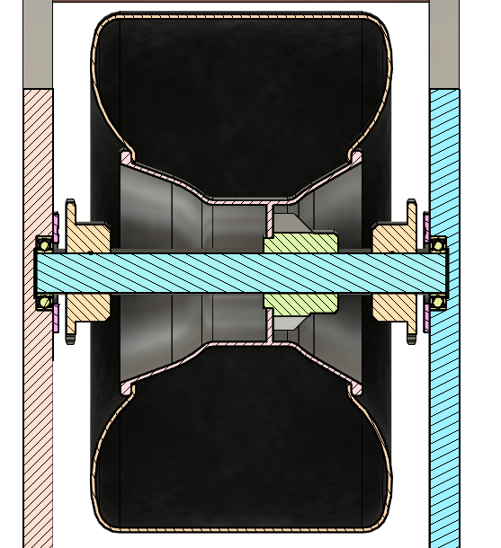 I’ve also made the axle longer. After modelling the tyre with dimensions more accurate to what I have to hand, it’s now 220mm long to give plenty more chain clearance, making the total width of the board 234mm which is just where I’d like it to be.