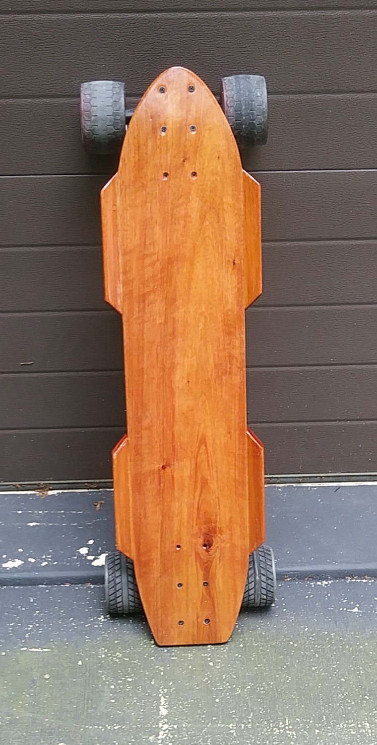 Currently experimenting with different wheels as a manual board, my goal is to create a “Parsec” like experience with easy pushing and a lightweight short distance board. I also want it to be “stealth” and look like a manual board to the casual observer so I’ll be using hub motors. Open to suggestions for a good hub motor and ESC that can push 120 Clouds or similar, I may start with 105’s to see if I can live with them. I want a low profile battery so likely a 1P 18650 single layer high C rate cell. Also need a low profile ESC. I’ll carve a pocket into the bottom of the board and make a wood cover to match the board.
