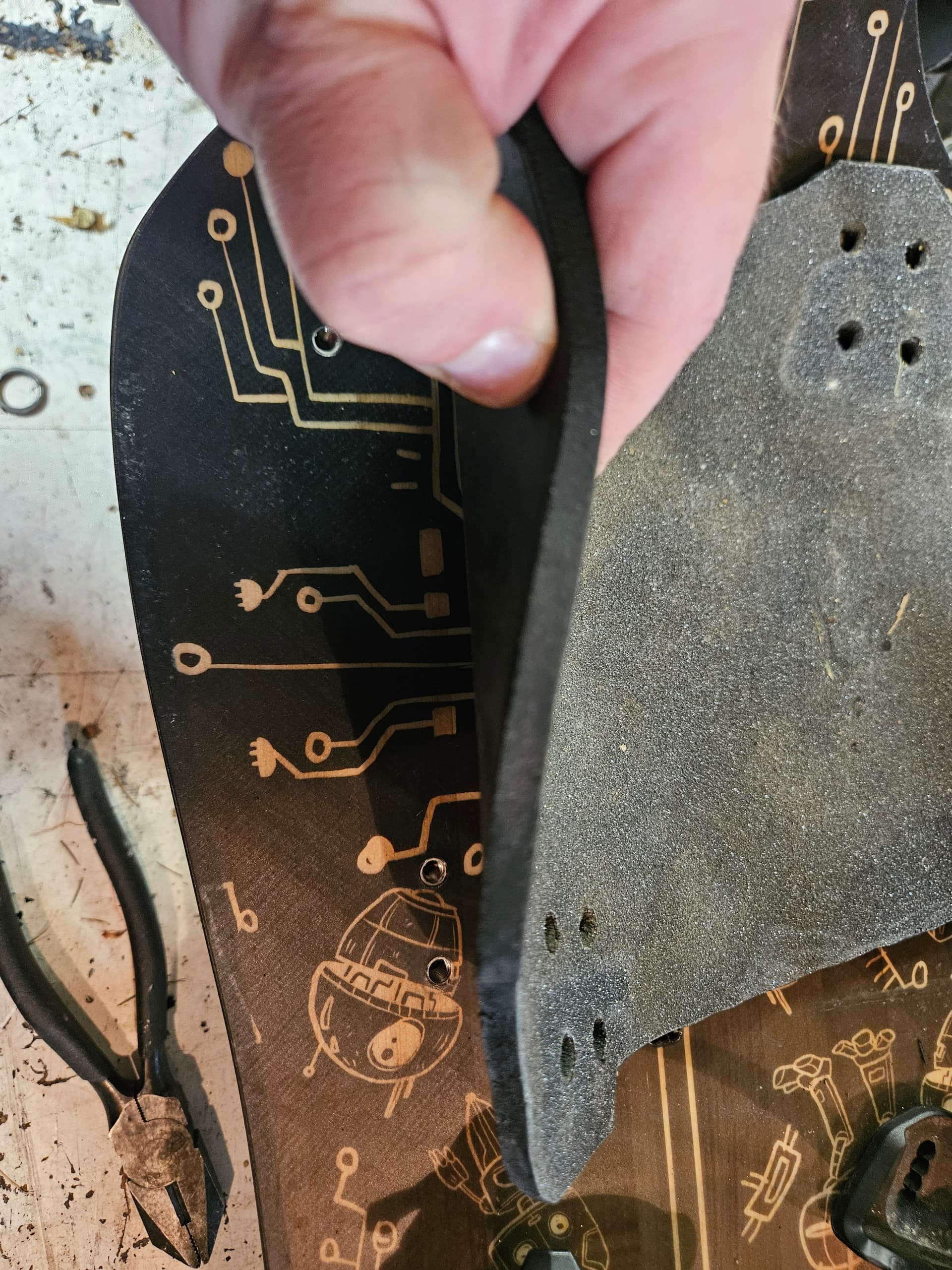 I might go with 1/8th rubber as well. Well I was using just the binding holes, and the rubber is pretty heavy so the edges don’t lift much when standing on it or looking at it… but I am servicing my board/converting to jump mode and notice a lot of rocks/dirt in the channel and under the pad. I’ll probably use silicone in the channel this time around.